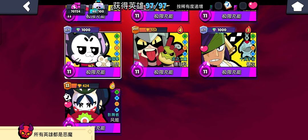 全英雄,全极充,新出的金币直接买。皮肤几百个