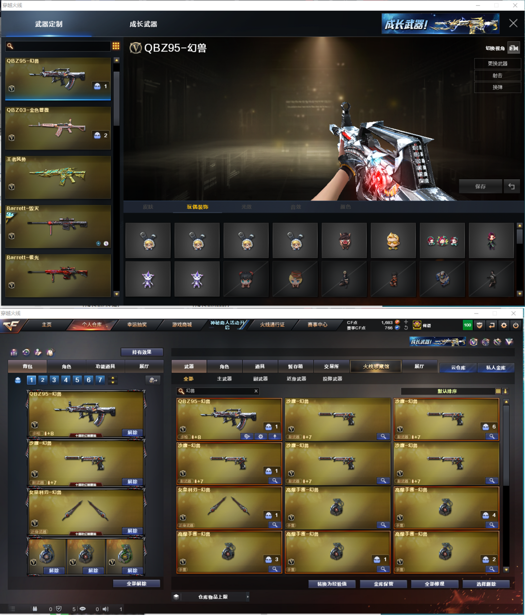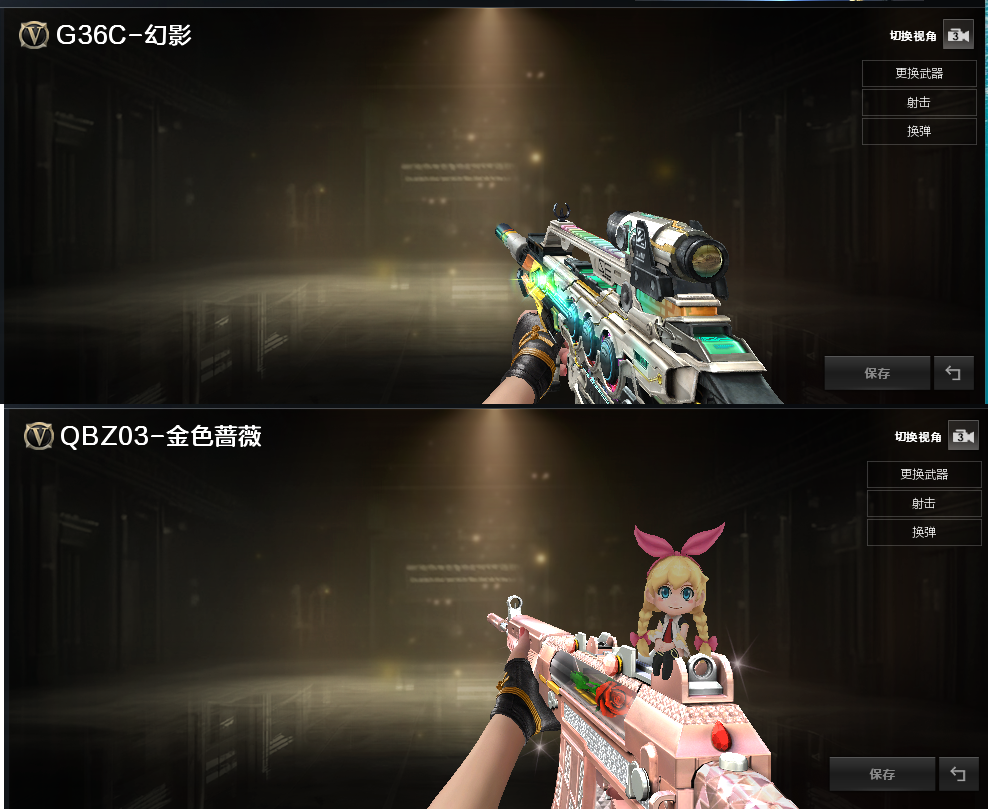 幻兽5套G36幻影|电流骇客幻神音效星神USP手枪柯尔特|QBZ蔷薇160V蝴蝶人物
