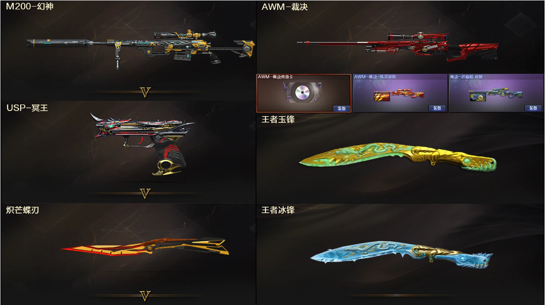 幻神+裁决运输船凤灵音效卡❤QBZ电竞独角+白虎金芒巅峰小艾音效卡❤幻影朱雀+冥王USP❤3防荆棘华
