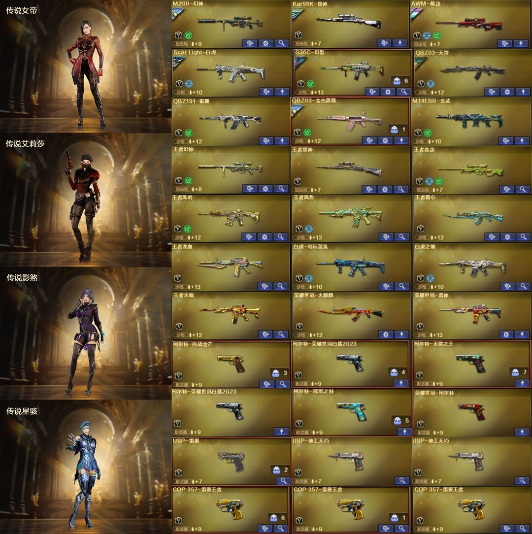 34豆【东部】传说女帝+幽瞳⭐幻神EP星火23皮+音⭐裁决星神套⭐白虎蔷薇套⭐泡泡象⭐满手枪⭐蝴蝶刀