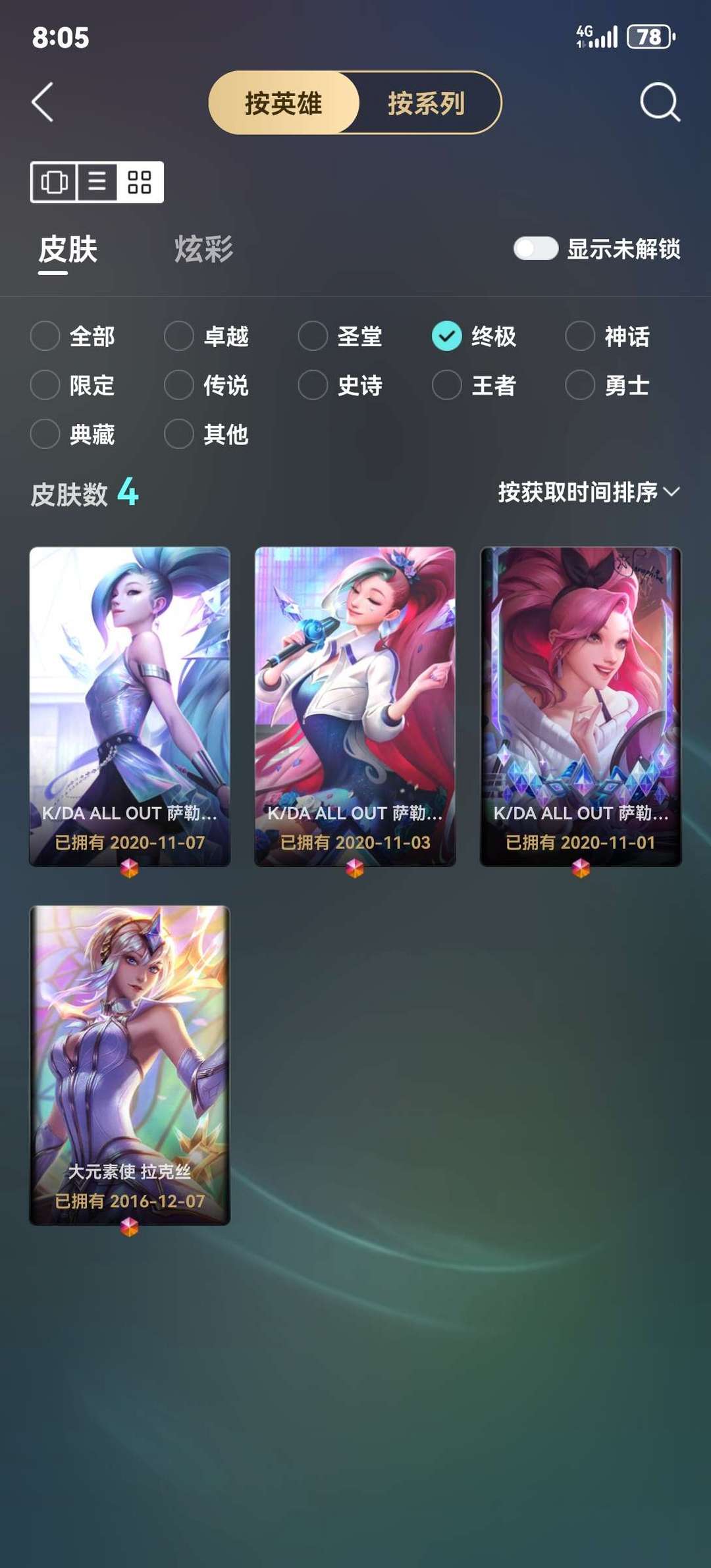 龙的传人 大元素使 女帝卡特 女帝奇亚娜 至臻琪亚娜 kda萨勒芬妮三个 至臻皎月 至臻鱼人 至臻日女 神龙瞎子 玉静夜叉 电玩女神 海克斯大嘴 鲜血领主 原计划剑圣 枯萎之壤 征服者韦鲁斯 至臻露露 神凰行者霞 西部天使塞纳 黑夜亚瑟 天煞 skt 冠军劫 冠军螳螂 原计划铁男