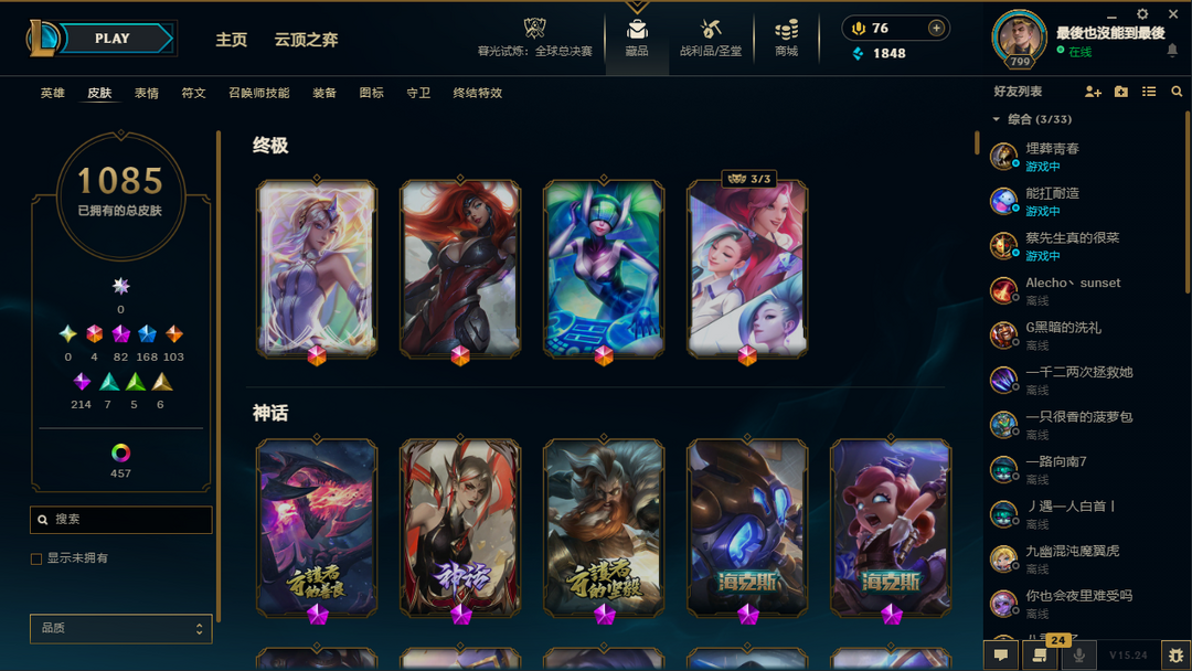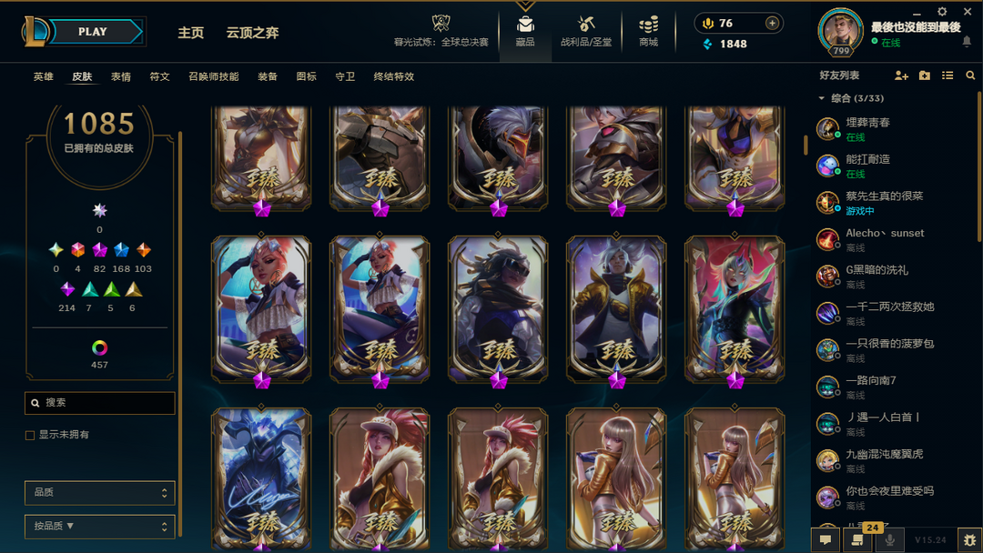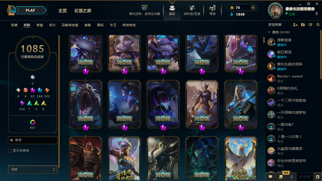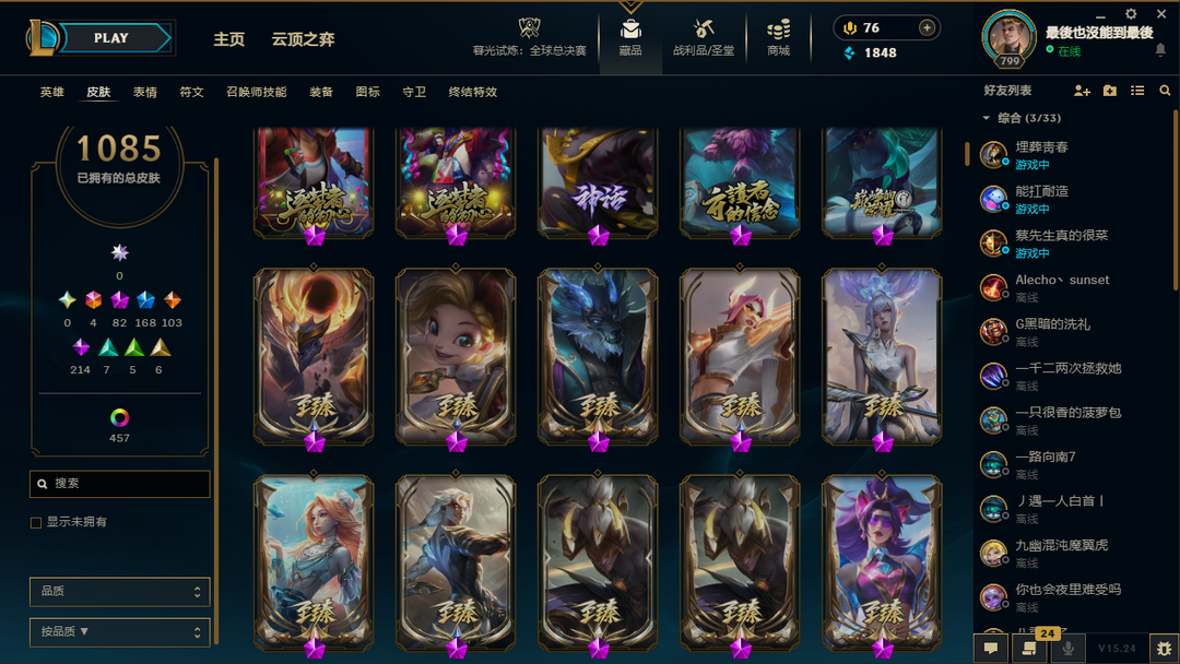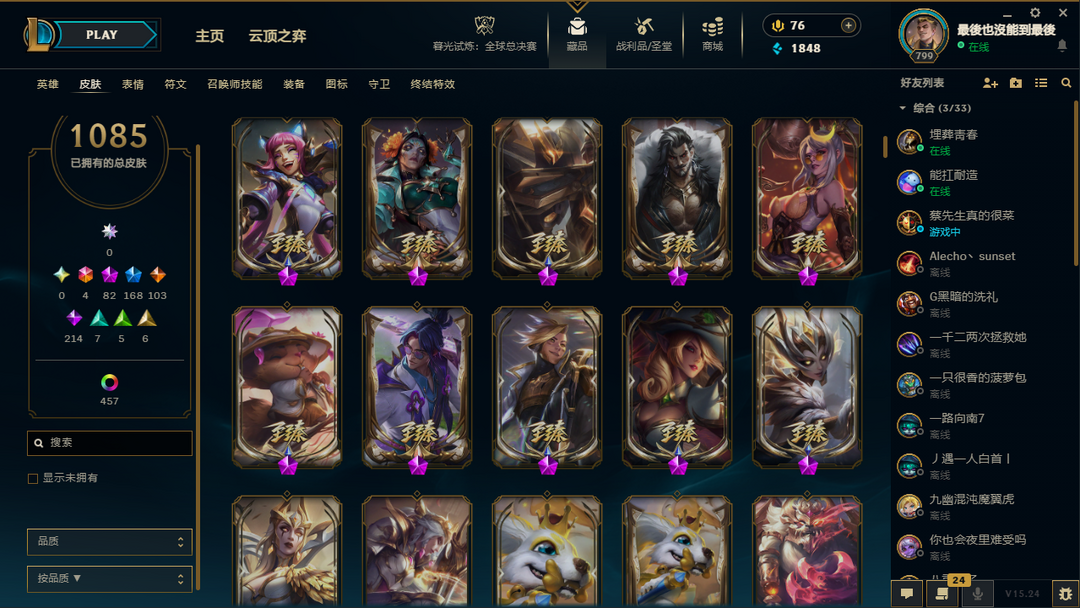 【艾欧尼亚】龙的传人/殿堂传奇乐芙兰/至臻T1杰斯/冠军年限皮/神话82/传说103/原皮1080