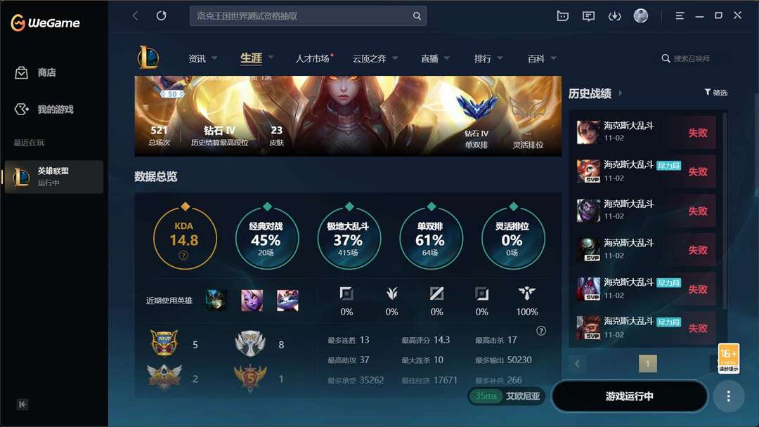 可排位❤️艾欧尼亚钻二❤️大乱斗负胜率炸鱼号