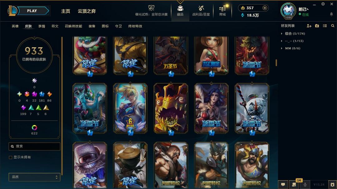 【黑色玫瑰】1600P禁排位乄1000原皮乄663炫彩乄28臻彩乄22神话乄181限定乄王者隐藏分