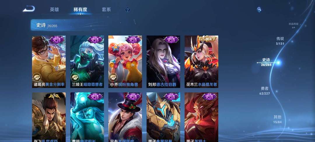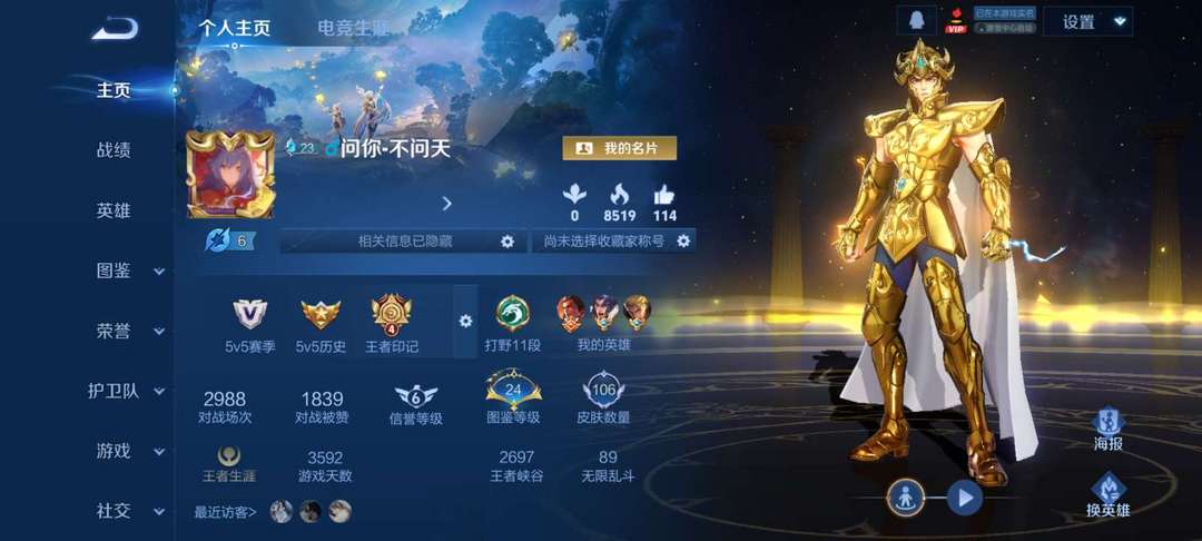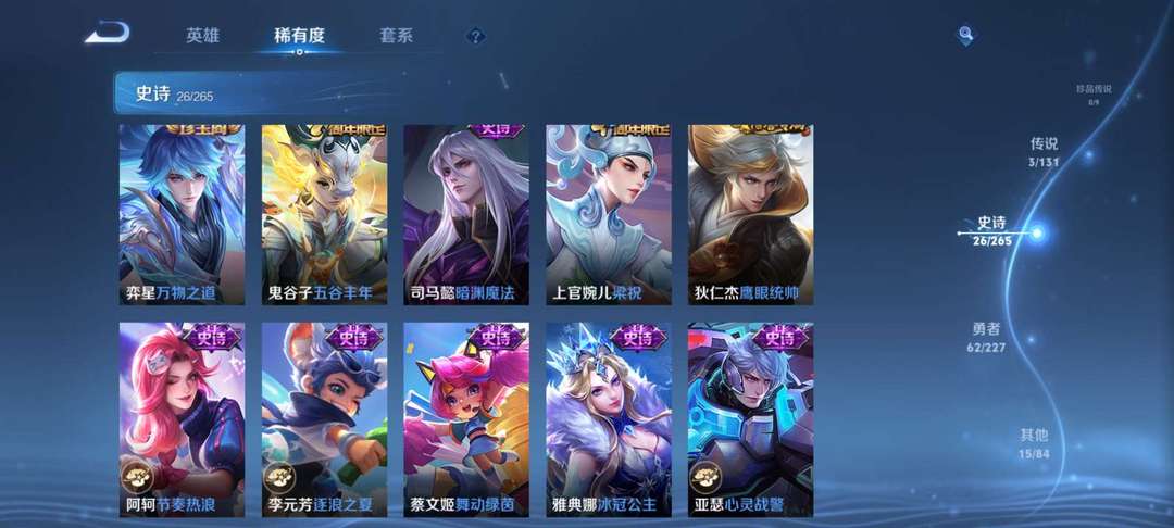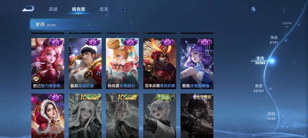 本游戏账号: ,英雄多,皮肤多。 私人所属英雄皮肤有:桑启 鸣野蒿鬼谷子 五谷丰年||上官婉儿 梁祝||安琪拉 如懿||桑启 海盐诗旅||狄仁杰 阴阳师||米莱狄 御霄||鲁班大师 乓乓大师||达摩 沙漠行僧,等等