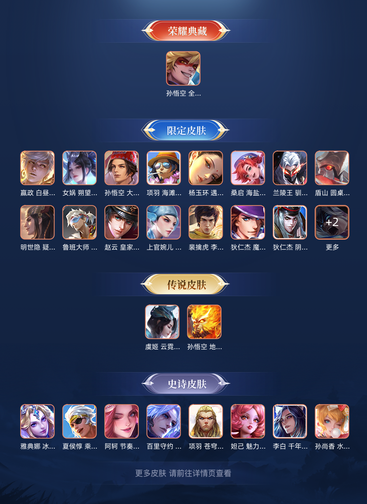 本游戏账号V7用户,基础段位:永恒钻石III,英雄多,皮肤多。,感受典藏皮肤带来的优质体验快感 私人所属英雄皮肤有:孙悟空 全息碎影孙悟空 地狱火孙悟空 大圣娶亲||女娲 朔望之晖||虞姬 云霓雀翎雅典娜 冰冠公主||夏侯惇 乘风破浪||百里守约 特工魅影||阿轲 节奏热浪,等等
