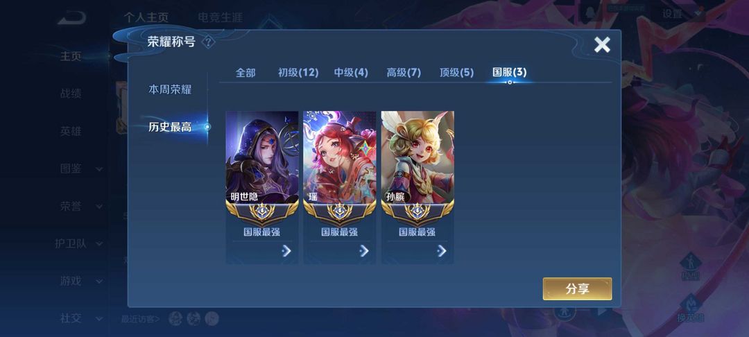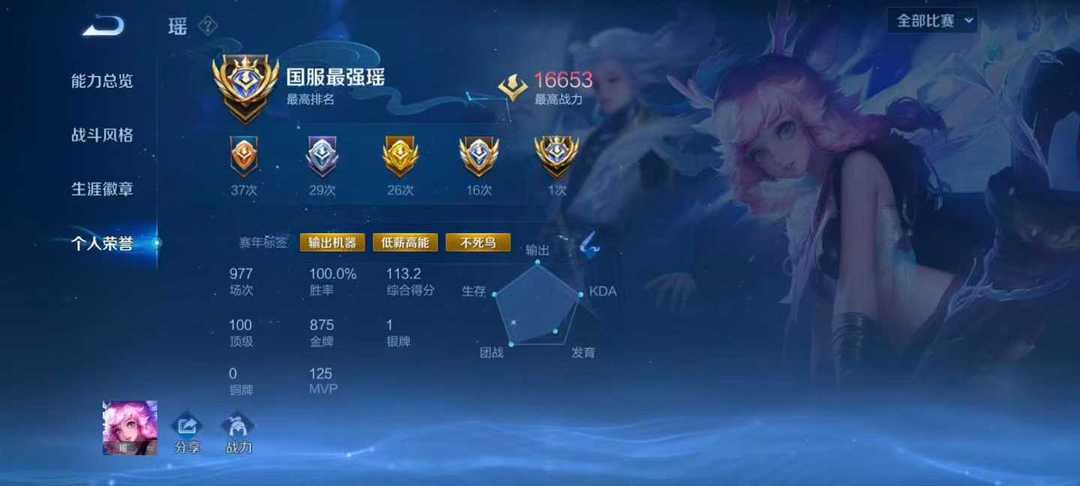 ⭐12月正式服在榜省级辅助97段五国服游走⭐超多省级限定皮肤百分百胜率瑶⭐可排禁巅峰