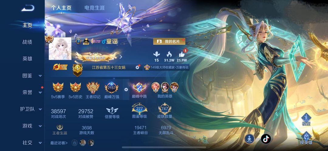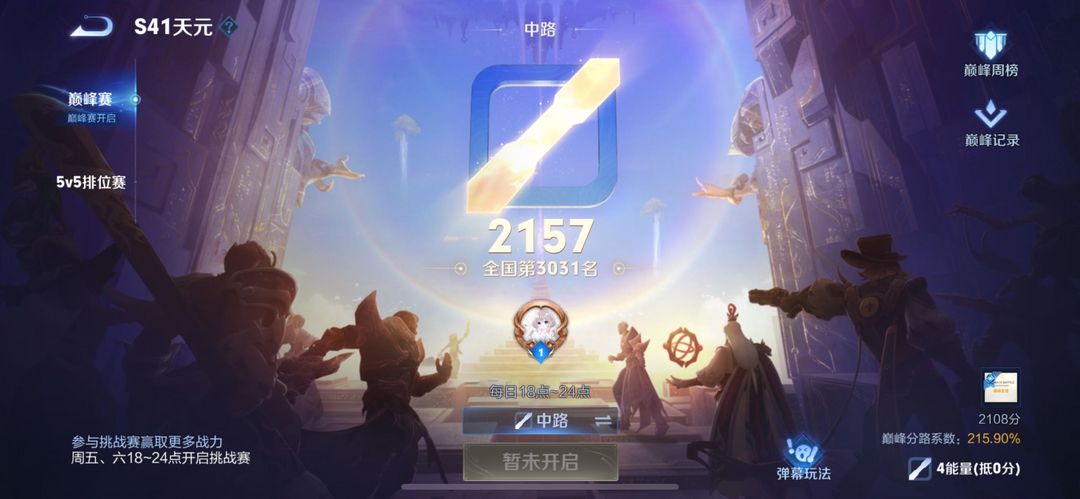 在榜省女娲❤历史国服巅峰中路❤禁巅峰千强2157荣耀119星❤历史6国服❤满水满星满按键满小兵