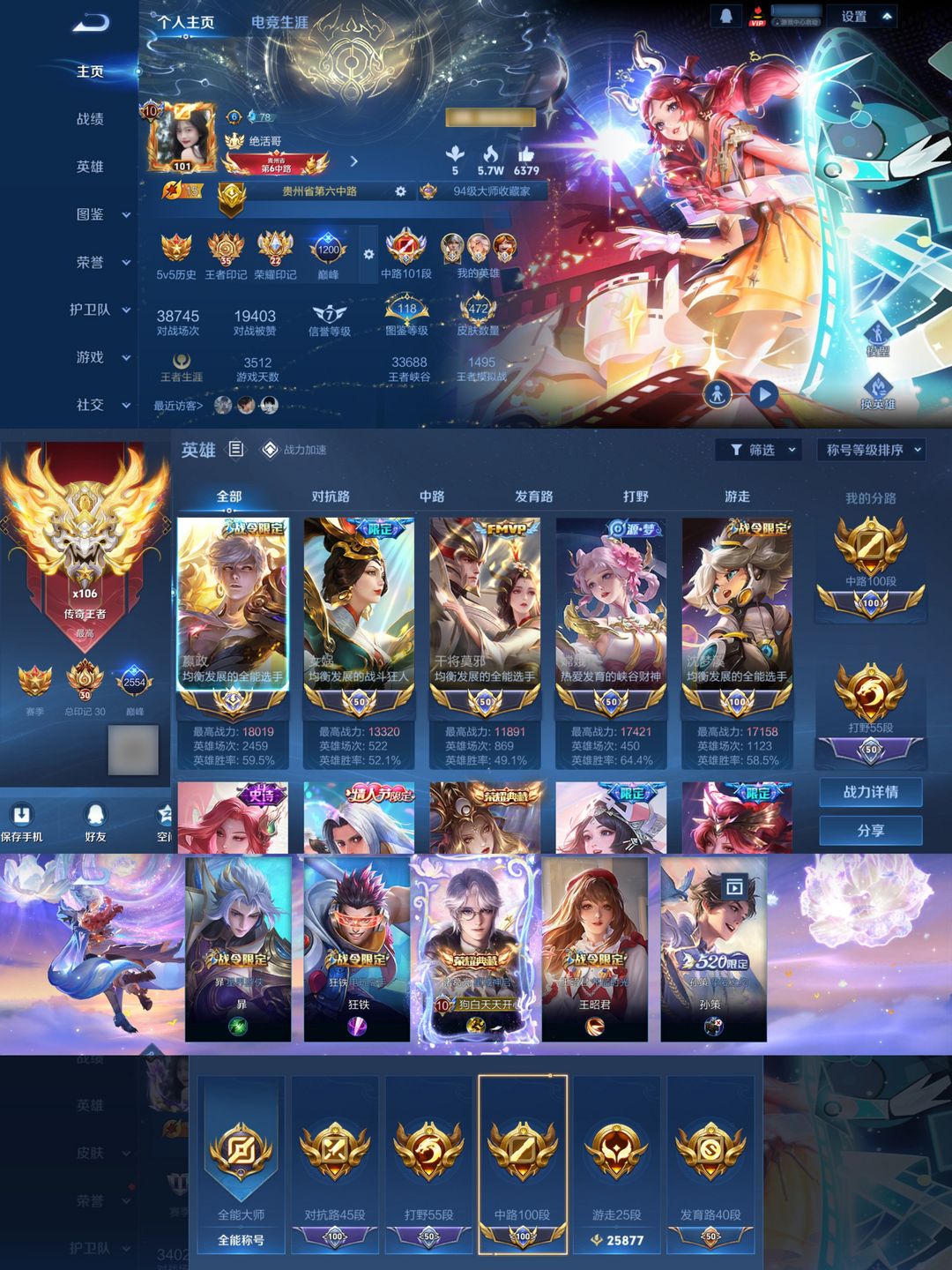 11月正式服在榜百段中路❤历史国服嬴政1.8W战力省级中路101段❤新典藏瑶拾光映像