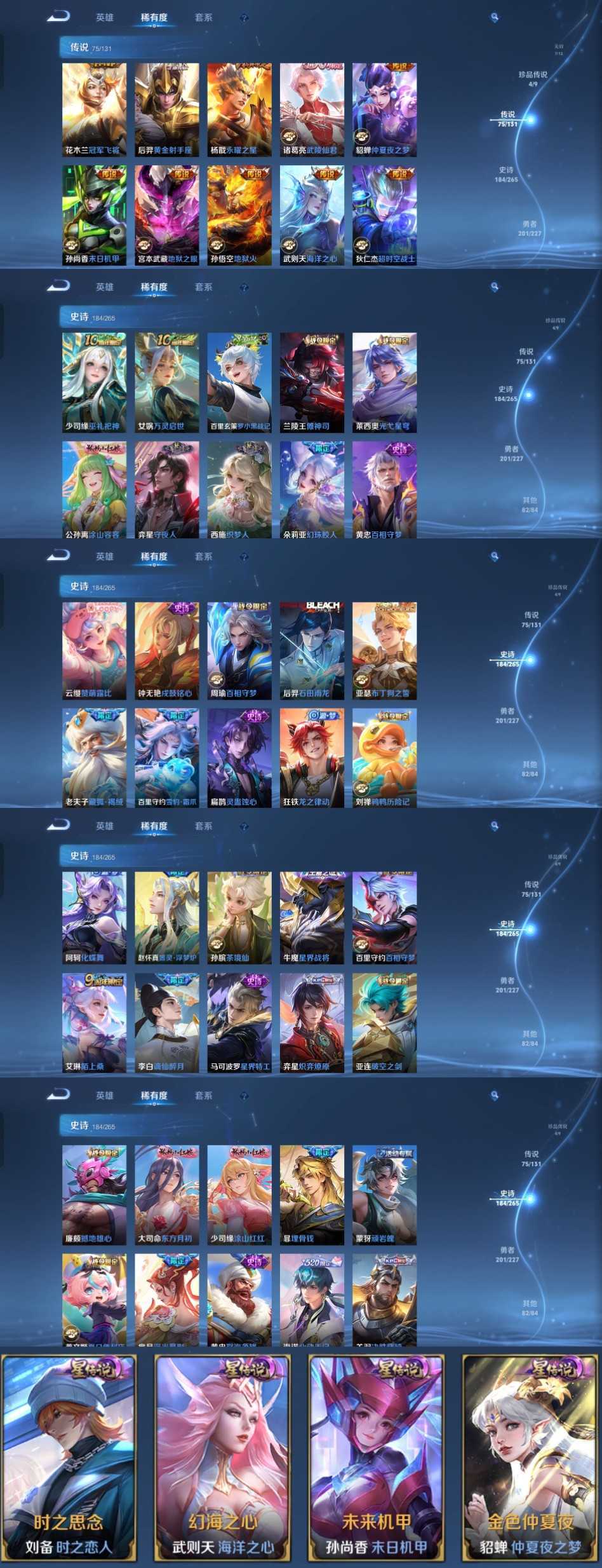 时间到了还登录白玩或者顶号全部改密拉黑处理永不解除,顶号机器会秒禁玩改密,顶号不仅拉黑还没得玩,赚三两块不容易,请理解谢谢。 ❤❤❤❤❤❤❤❤❤❤❤❤ 请勿开挂,挂机,送头,骂人,撤单后游戏等如有违规永久拉黑永不解除。 重置二级密码不要费劲了,号主每天都会上号查看,多行不义必自毙,人在做天在看,多做好事多自律,少做缺德事 该号英雄128个皮肤559个,典藏7个,无双7个,珍品传说4个,星传说4个,传说75个,史诗184个,祝你游戏愉快~