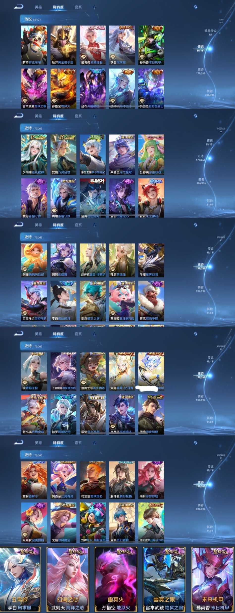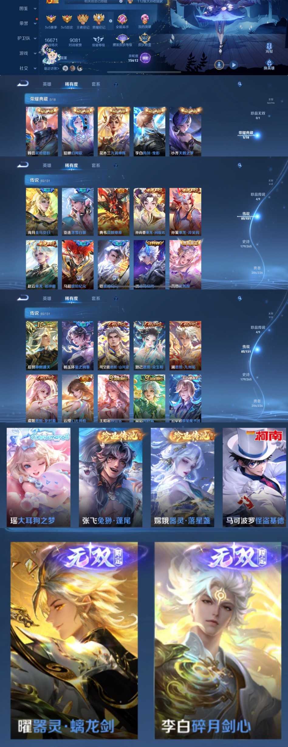 时间到了还登录白玩或者顶号全部改密拉黑处理永不解除,顶号机器会秒禁玩改密,顶号不仅拉黑还没得玩,赚三两块不容易,请理解谢谢。 ❤❤❤❤❤❤❤❤❤❤❤❤❤❤❤❤❤❤ 请勿开挂,挂机,送头,骂人,撤单后游戏等如有违规永久拉黑永不解除。 重置二级密码不要费劲了,号主每天都会上号查看,多行不义必自毙,人在做天在看,多做好事多自律,少做缺德事。 该号英雄128个皮肤562个,典藏6个,无双2个,珍品传说4个,星传说5个,传说85个,史诗179个,祝你游戏愉快~