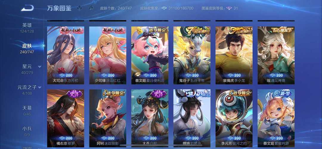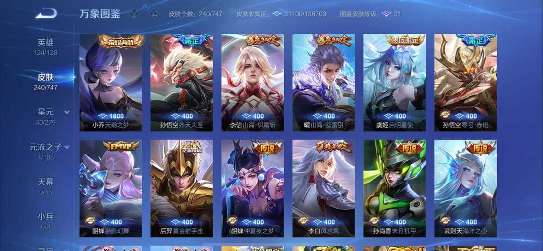 本游戏账号: V9用户,基础段位:至尊星耀V,英雄多,皮肤多。典藏皮肤2个,感受典藏皮肤带来的优质体验快感,FMVP皮肤5个,尽情享受FMVP皮肤带来的主角光环, 私人所属英雄皮肤有:李白 鸣剑·曳影||夏侯惇 无限飓风号艾琳 觅芳踪||梦奇 胖达荣荣||张良 黄金白羊座||貂蝉 仲夏夜之梦||虞姬 云霓雀翎||后羿 黄金射手座||公孙离 祈雪灵祝||兰陵王 默契交锋||李信 一念神魔||孙悟空 零号·赤焰||诸葛亮 时雨天司||铠 绛天战甲||虞姬 启明星使||关羽 武圣||达摩 黄金狮子座||杨戬 永曜之星||吕布 天魔缭乱||狄仁杰 超时空战士||宫本武藏 地狱之眼||孙悟空 地狱火||孙尚香 末日机甲,等等