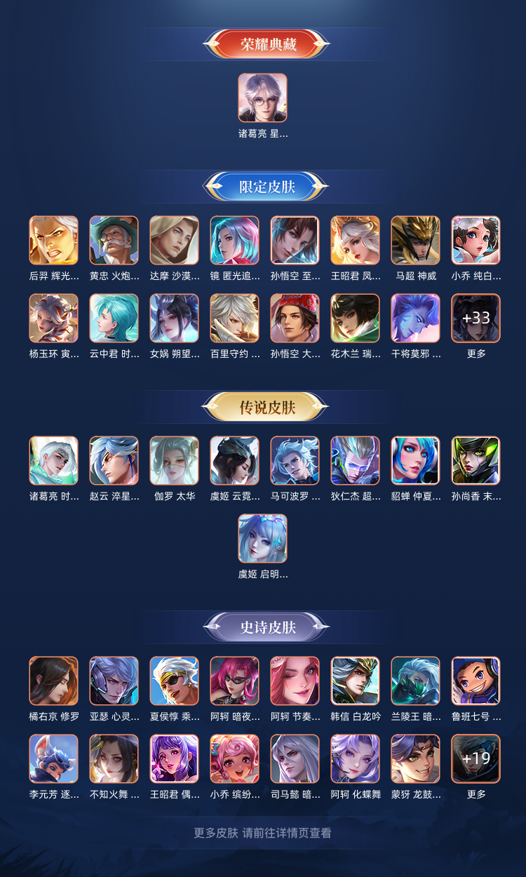 本游戏账号: ,英雄多,皮肤多。典藏皮肤1个,感受典藏皮肤带来的优质体验快感,FMVP皮肤2个,尽情享受FMVP皮肤带来的主角光环, 私人所属英雄皮肤有:诸葛亮 星域神启虞姬 云霓雀翎||虞姬 启明星使||貂蝉 仲夏夜之梦||赵云 淬星耀世||伽罗 太华||马可波罗 深海之息||孙尚香 末日机甲||诸葛亮 时雨天司||狄仁杰 超时空战士,等等