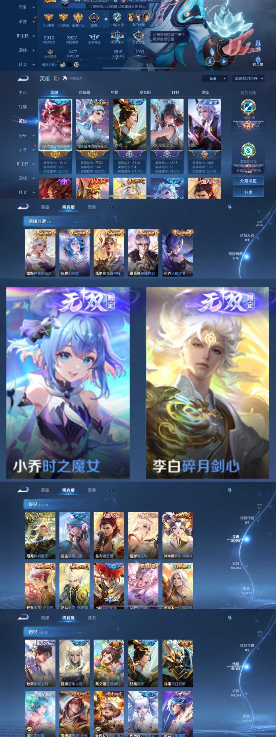 时间到了还登录白玩或者顶号全部改密拉黑处理永不解除,顶号机器会秒禁玩改密,顶号不仅拉黑还没得玩,赚三两块不容易,请理解谢谢。 ❤❤❤❤❤❤❤❤❤❤❤❤❤❤❤❤❤❤❤ 请勿开挂,挂机,送头,骂人,撤单后游戏等如有违规永久拉黑永不解除。 重置二级密码不要费劲了,号主每天都会上号查看,多行不义必自毙,人在做天在看,多做好事多自律,少做缺德事。 该号英雄127个皮肤447个,典藏5个,星传说4个,传说49个,史诗145个,祝您游戏愉快~