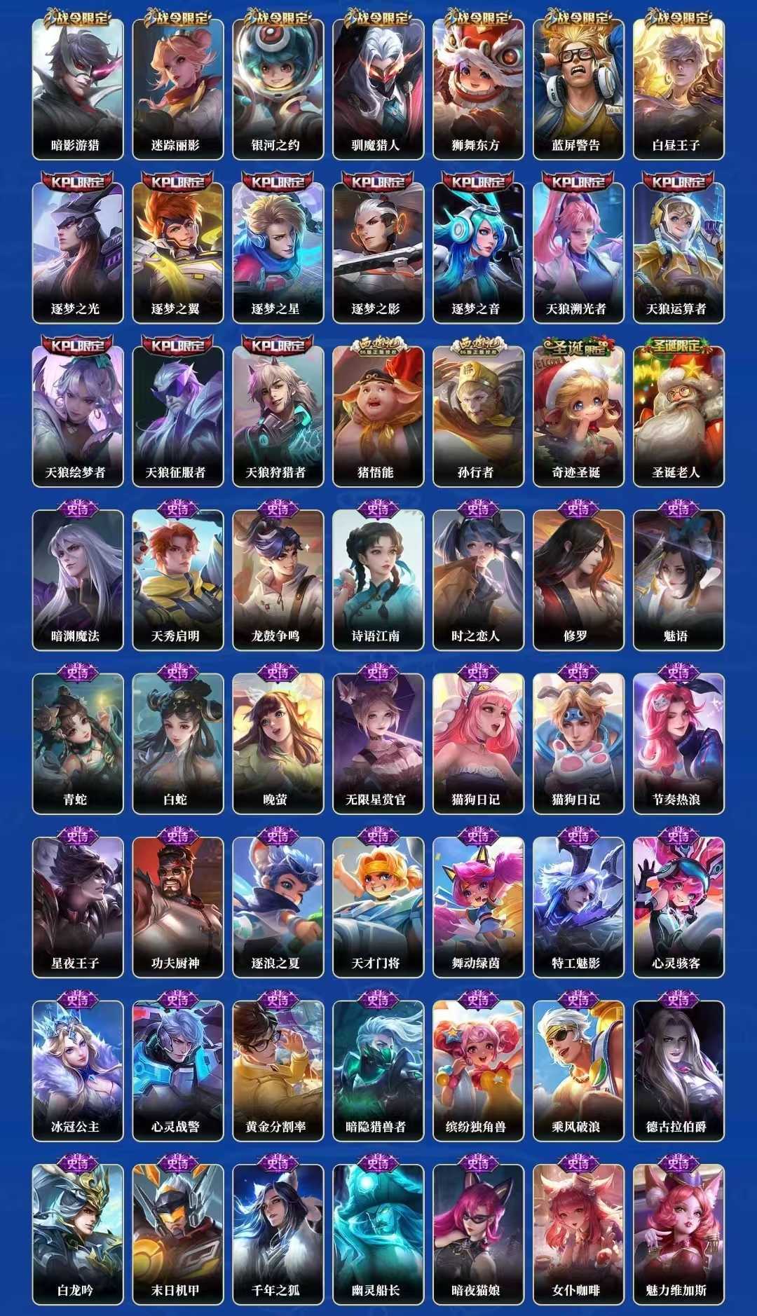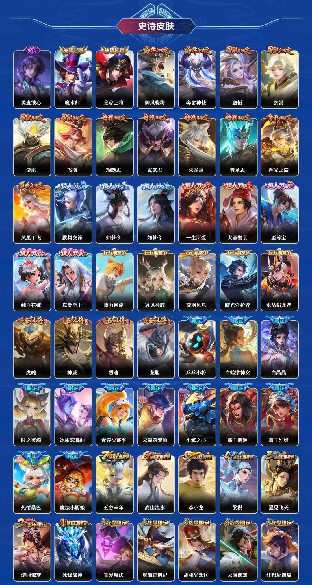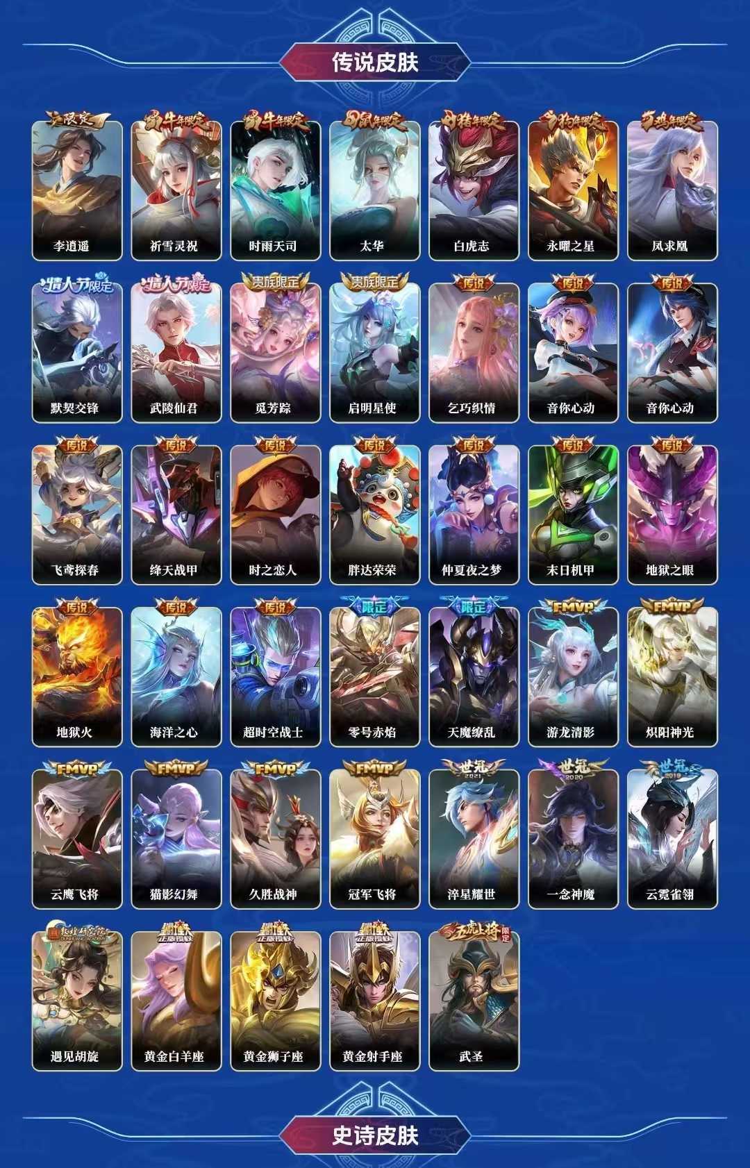 【C270】贵族V10~426皮肤10水晶40传说祈雪灵祝时雨天司倪克斯神谕,全息碎影,鸣剑曳影,活力突击,遇见胡旋,李逍遥,太华,太华,天魔缭乱,无限飓风号,大秦宣太后,星空梦想,天鹅之梦,杀手不太冷【全山海情兔年,全寅虎,全五虎上将,全牛年,全五兽】