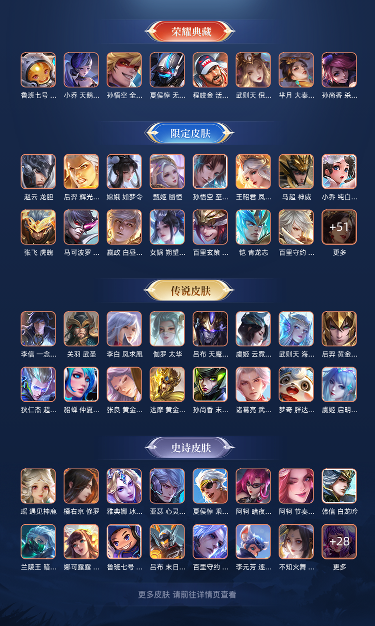 本游戏账号: ,基础段位:至尊星耀IV,英雄多,皮肤多。典藏皮肤8个,感受典藏皮肤带来的优质体验快感,FMVP皮肤3个,尽情享受FMVP皮肤带来的主角光环, 私人所属英雄皮肤有:孙悟空 全息碎影||武则天 倪克斯神谕||孙尚香 杀手不太冷||夏侯惇 无限飓风号||程咬金 活力突击||小乔 天鹅之梦||芈月 大秦宣太后||鲁班七号 星空梦想吕布 天魔缭乱||达摩 黄金狮子座||艾琳 觅芳踪||李白 凤求凰||关羽 武圣||李信 一念神魔||后羿 黄金射手座||伽罗 太华||武则天 海洋之心||孙尚香 末日机甲||貂蝉 仲夏夜之梦||虞姬 启明星使||虞姬 云霓雀翎||张良 黄金白羊座||狄仁杰 超时空战士||诸葛亮 武陵仙君||桑启 鸣野蒿||梦奇 胖达荣荣,等等