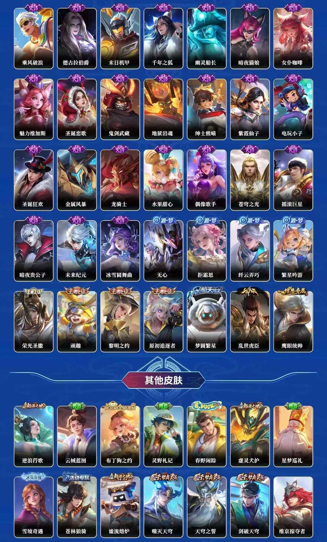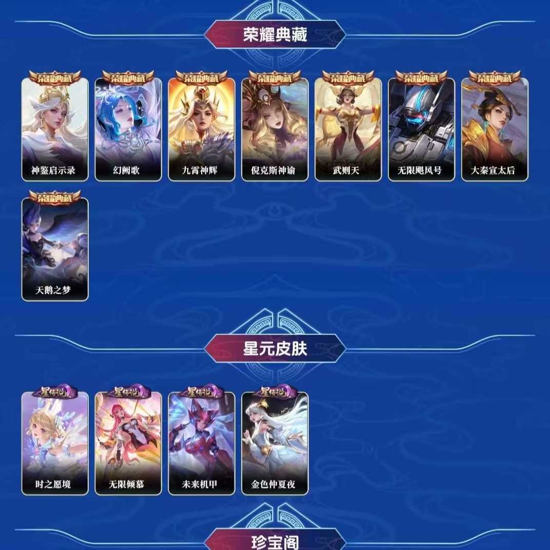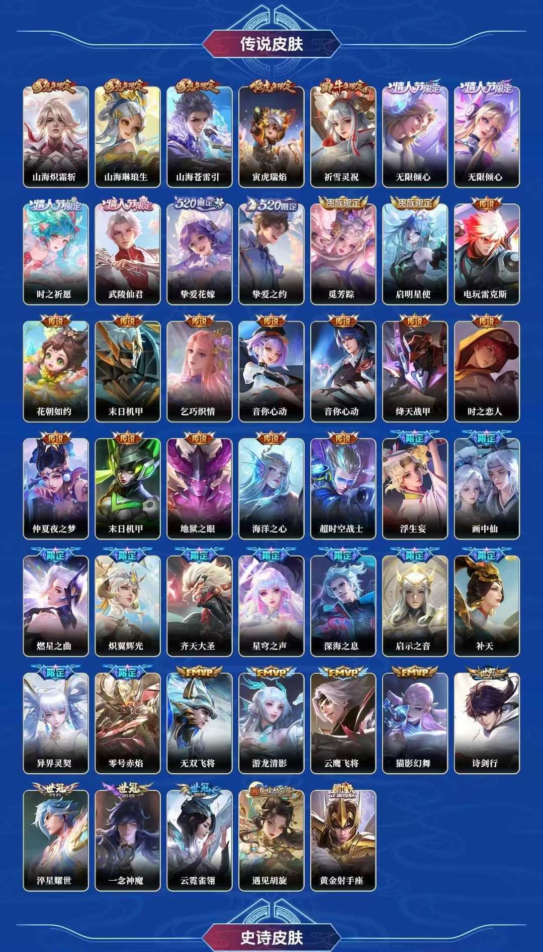 【C327】贵族V10~437皮肤8水晶47传说情瑶,神鉴启示录,幻阙歌,九霄神辉,倪克斯神谕,电玩雷克斯,画中仙,浮生妄,无双飞将,女娲补天,祈雪灵祝,无限飓风号,大秦宣太后,天鹅之梦【全山海情兔年,全寅虎,全五虎上将,全牛年,全五兽】