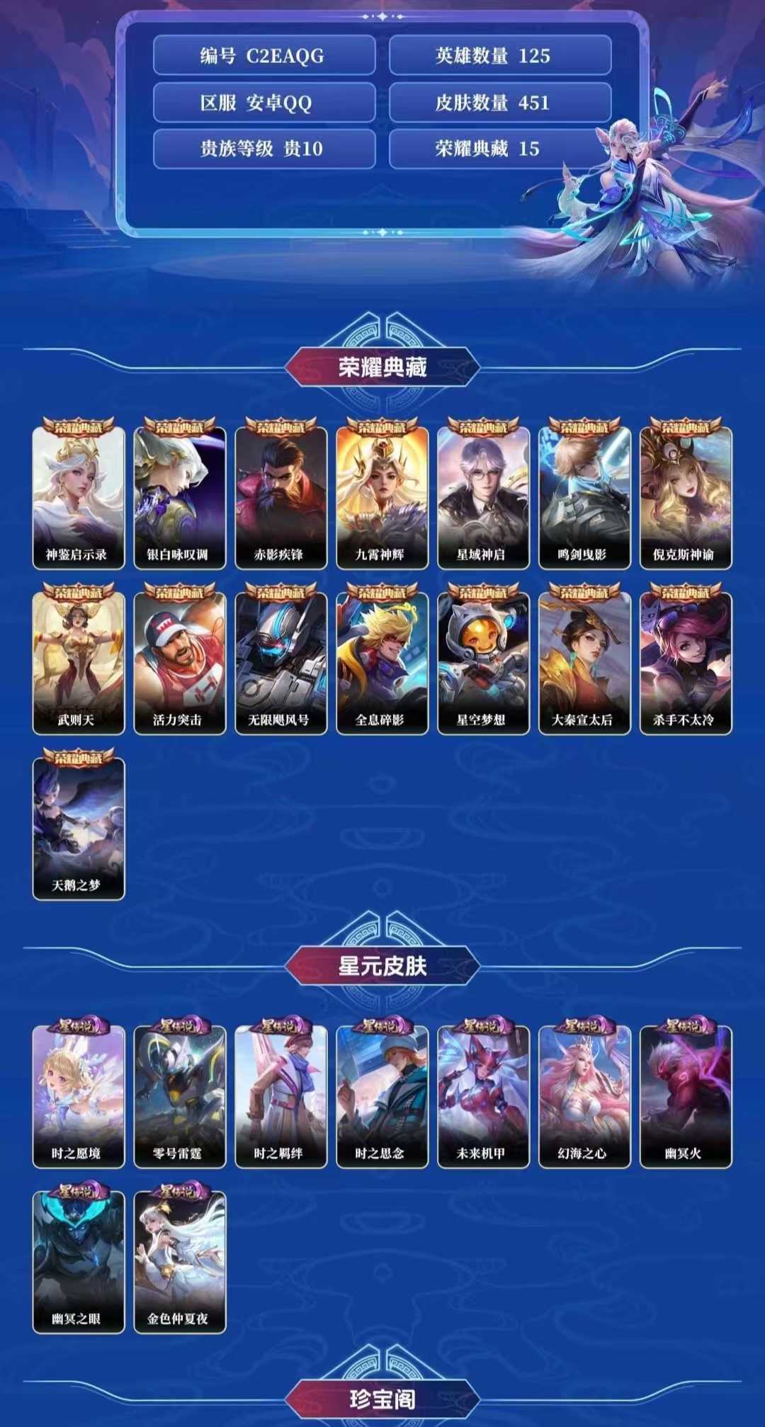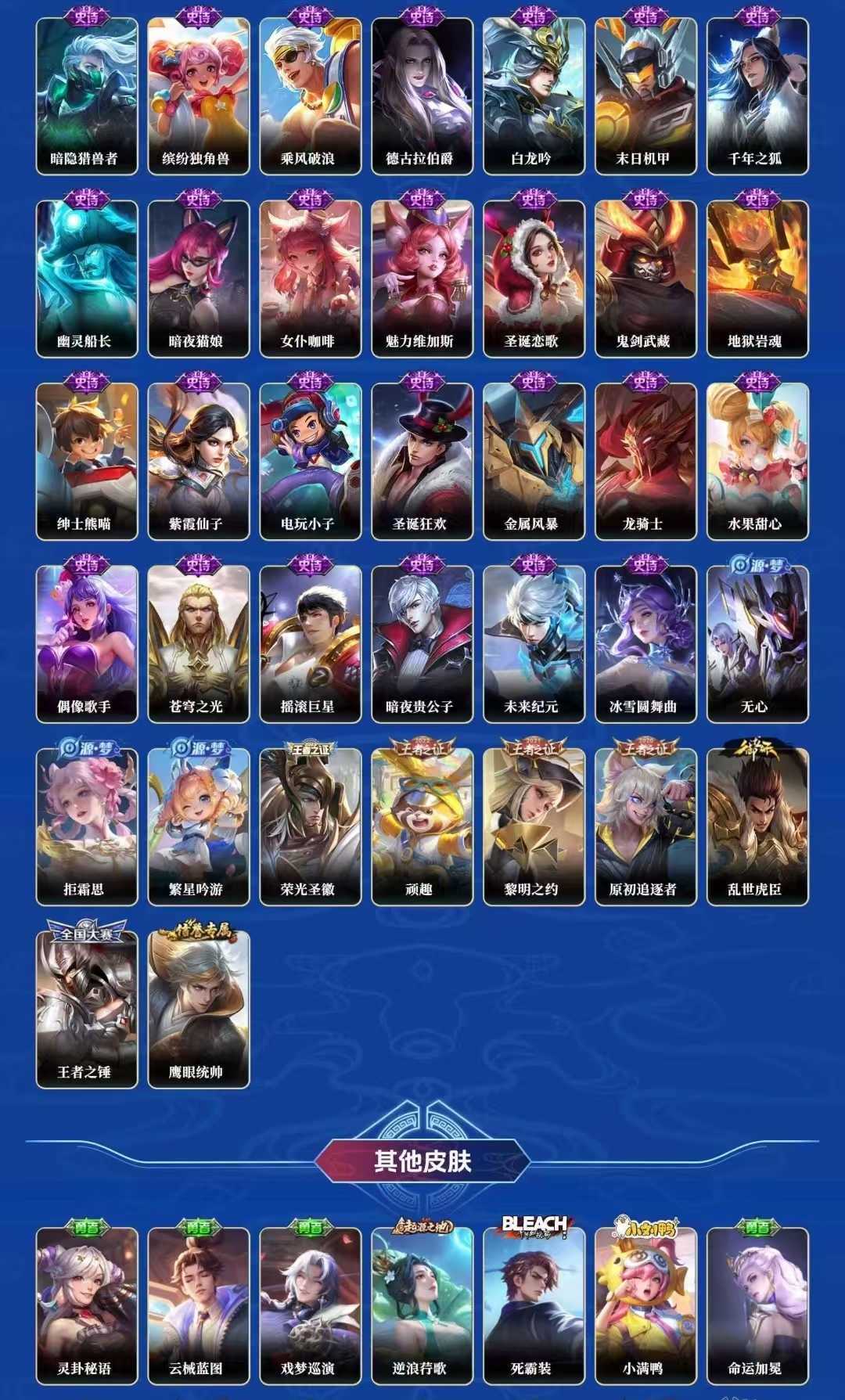 【C60】贵族V10~440皮肤15典藏9星元50传说九霄神辉紫情瑶赤影疾锋,银白咏叹调,星域神启,倪克斯神谕,全息碎影,鸣剑曳影,活力突击,无限飓风号,大秦宣太后,星空梦想,天鹅之梦,杀手不太冷
