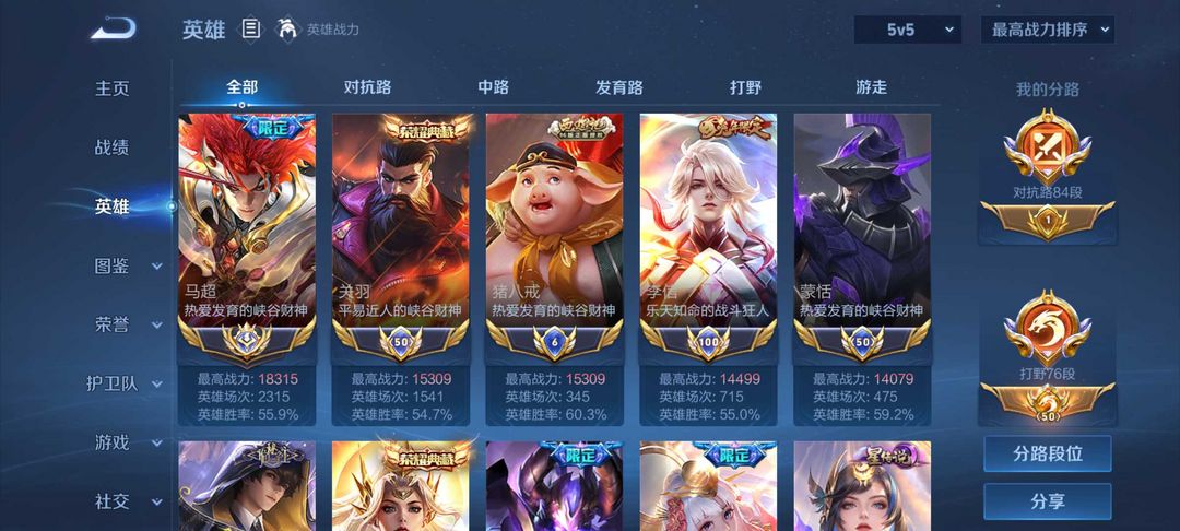 大国马超❤️85段对抗路❤️7小国李信元歌花木兰吕布关羽蒙恬猪八戒❤️打野76段
