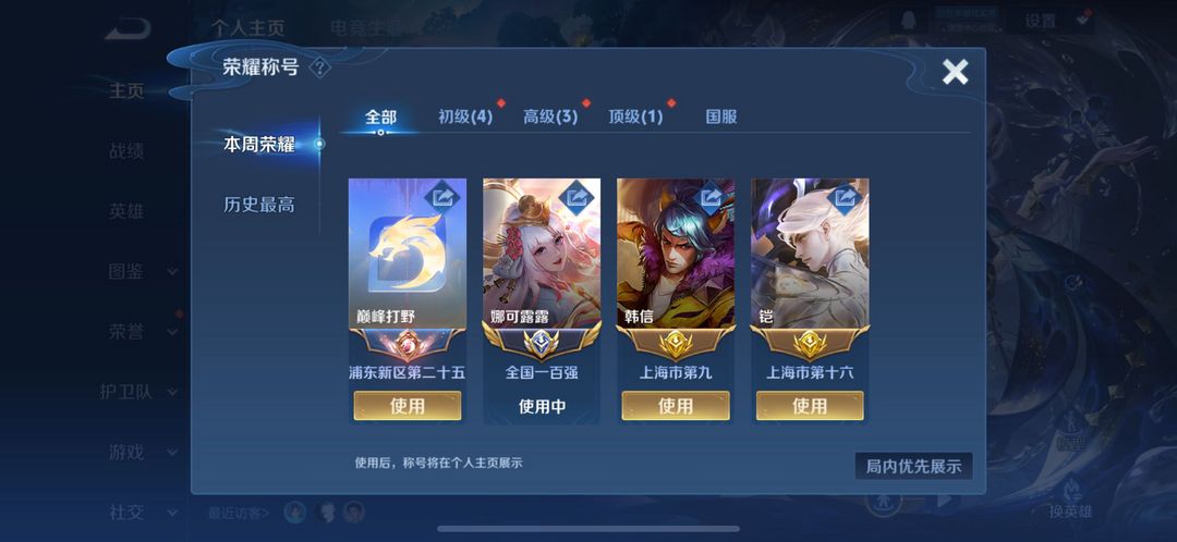 巅峰万强高排名现小国露露在榜,双1.35上海第9韩信,⚡️610皮肤极品号可排位禁巅峰,⚡️带妹必备
