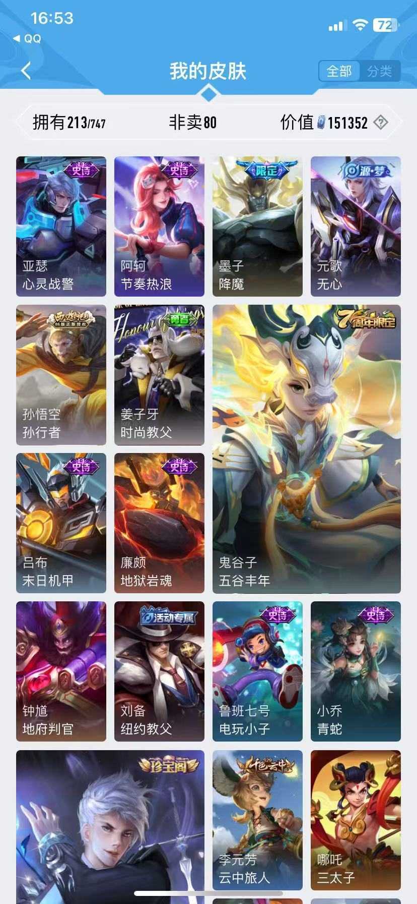 凯无双♥怪盗基德♥万灵启世♥云诺千山♥雪豹♥安琪拉嫦娥瑶珍品♥伽罗典藏♥小乔无双东方
