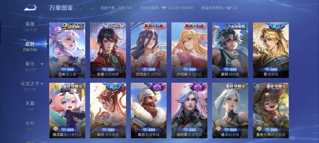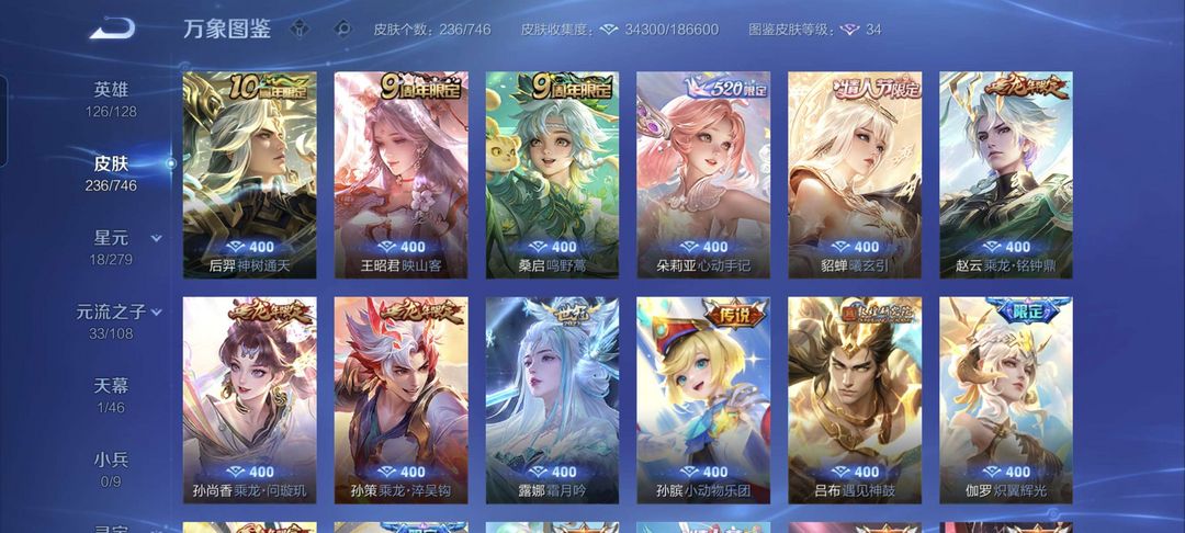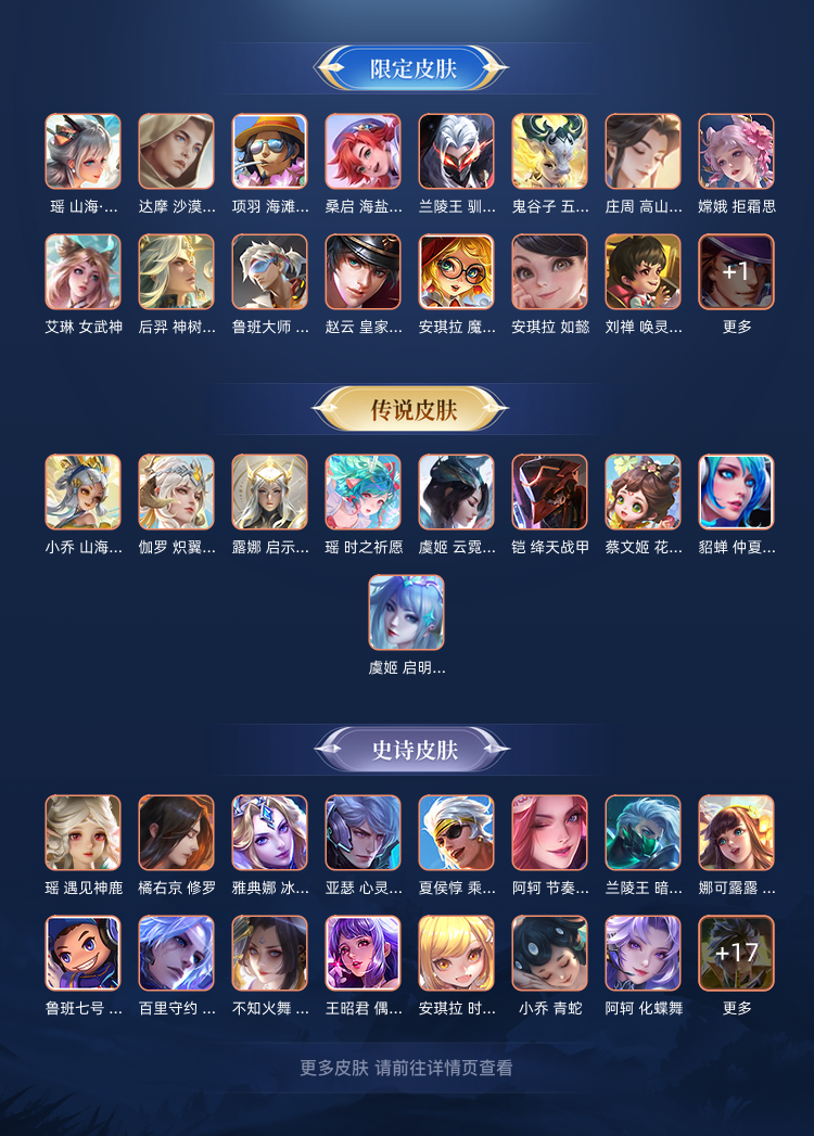 法师辅助还有射手的皮肤比较多有貂蝉的仲夏夜之梦和限定皮肤