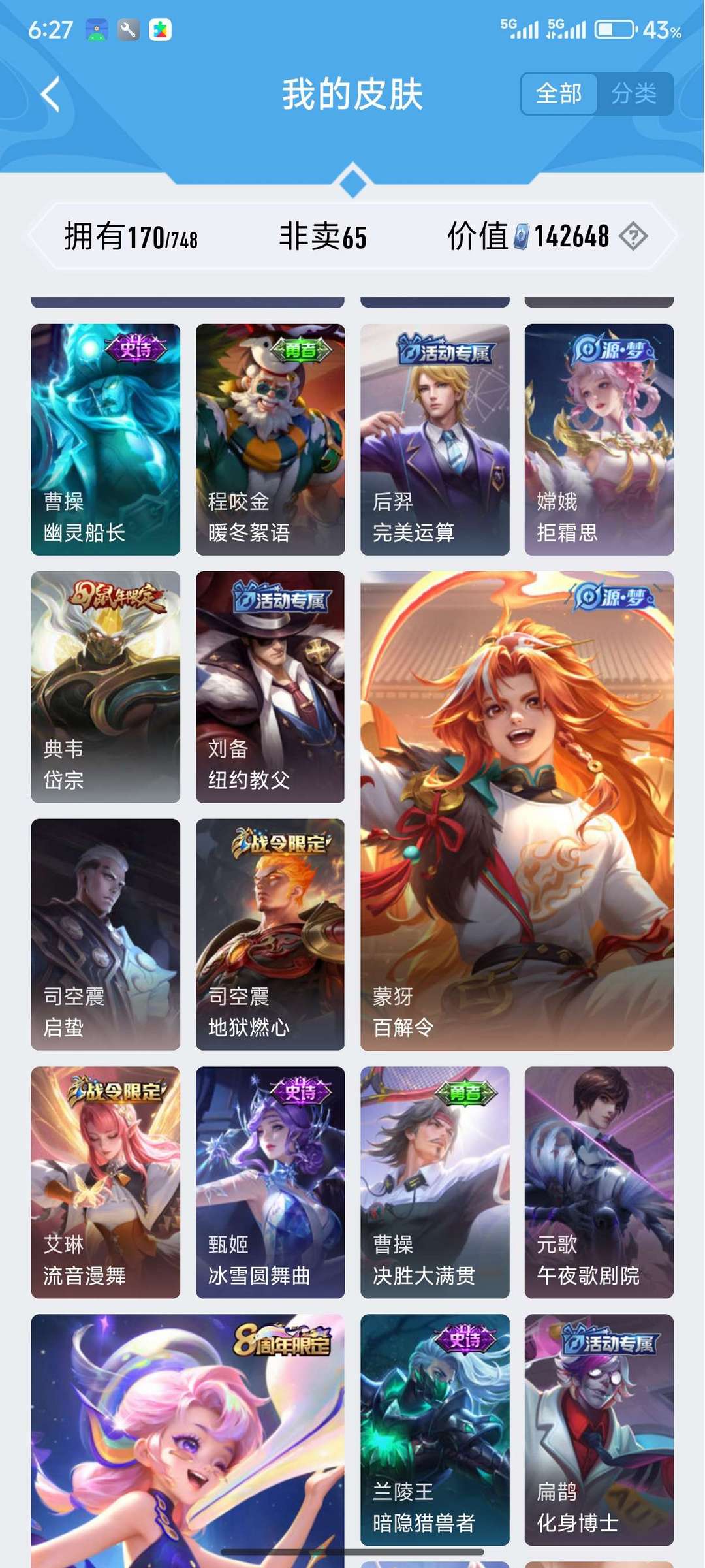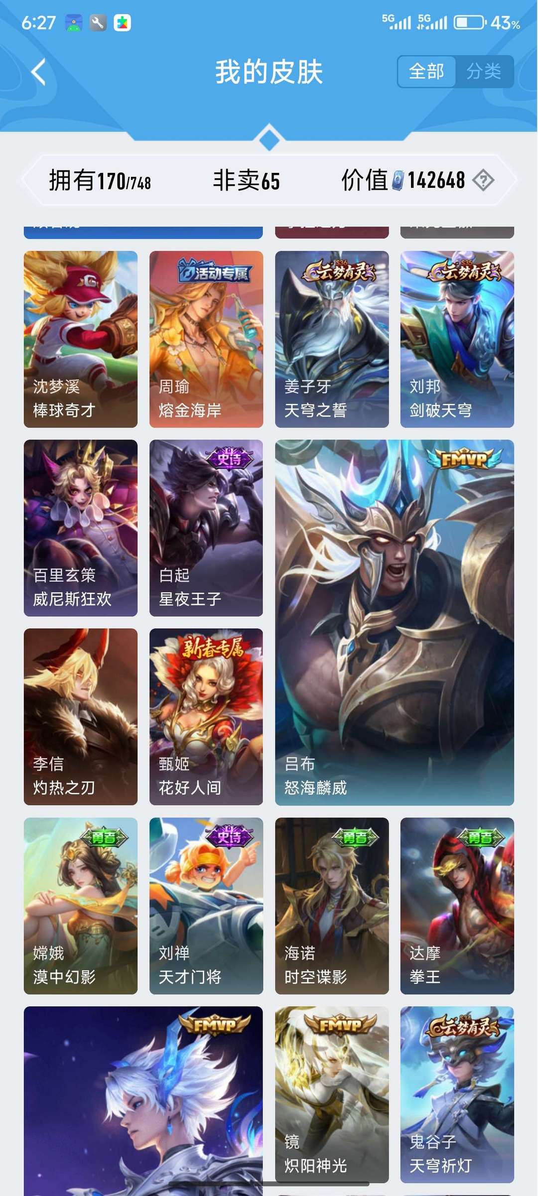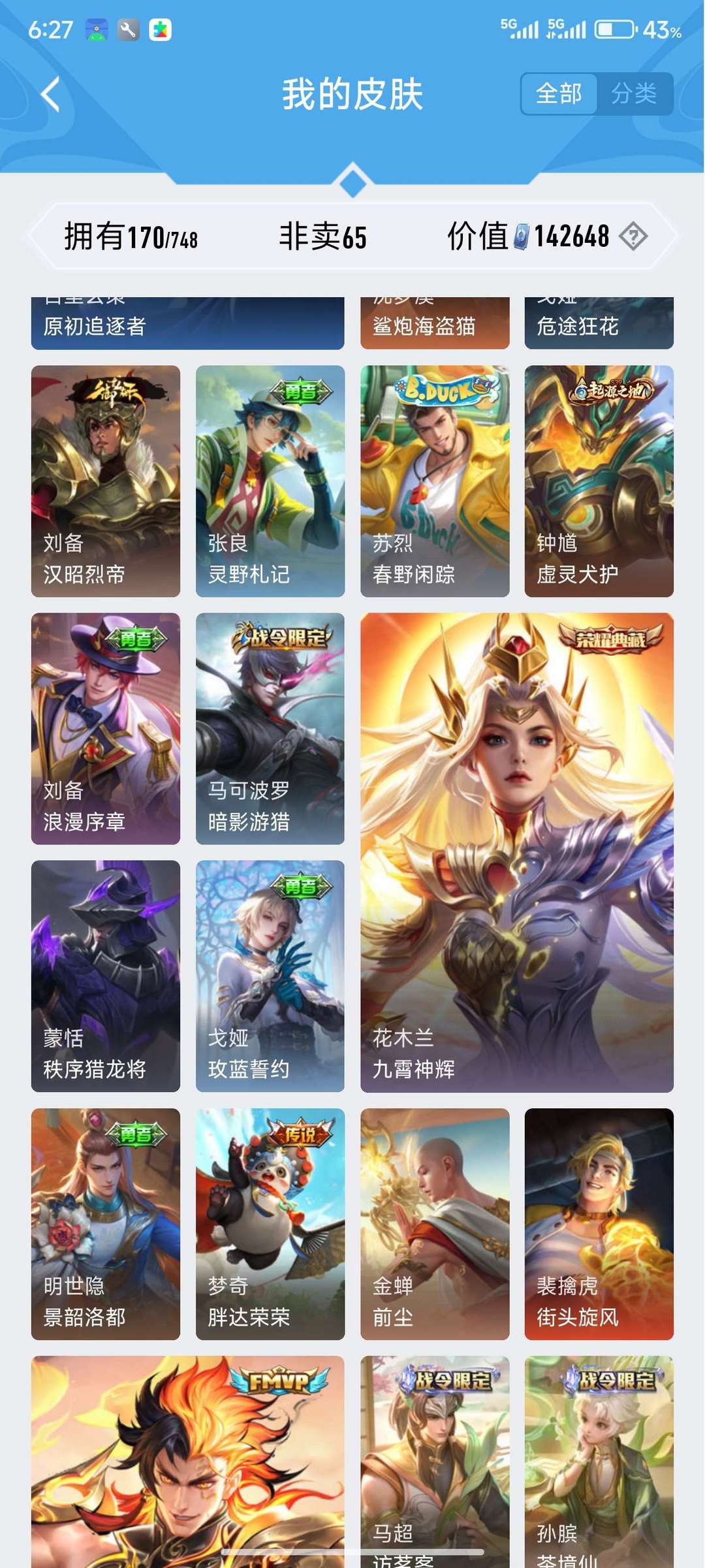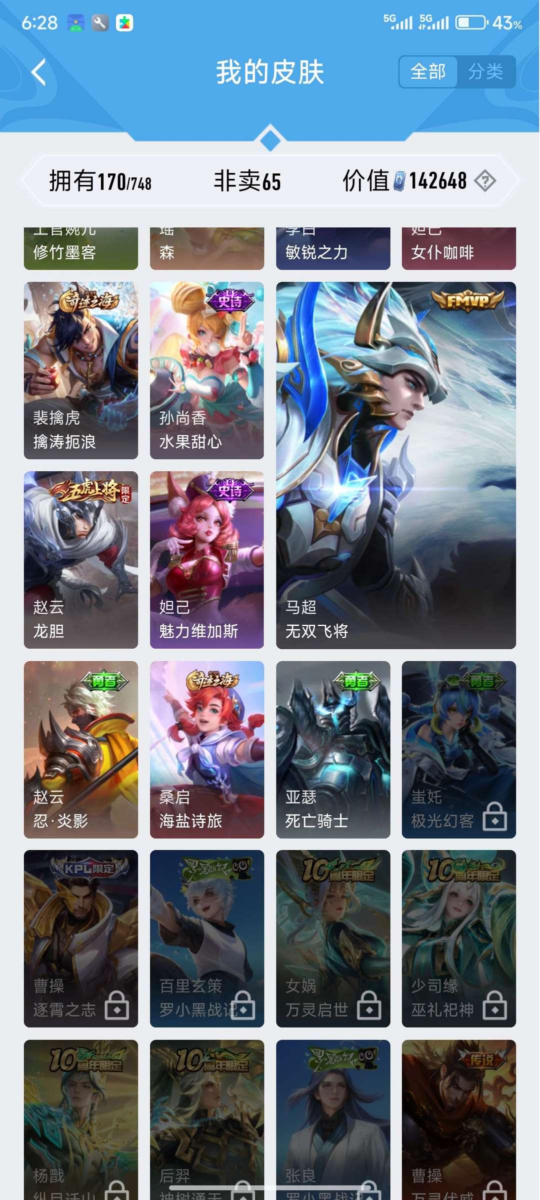 一万二金标马超11个传说皮,有个老虎虎限,有猴子至尊宝,花木兰典藏