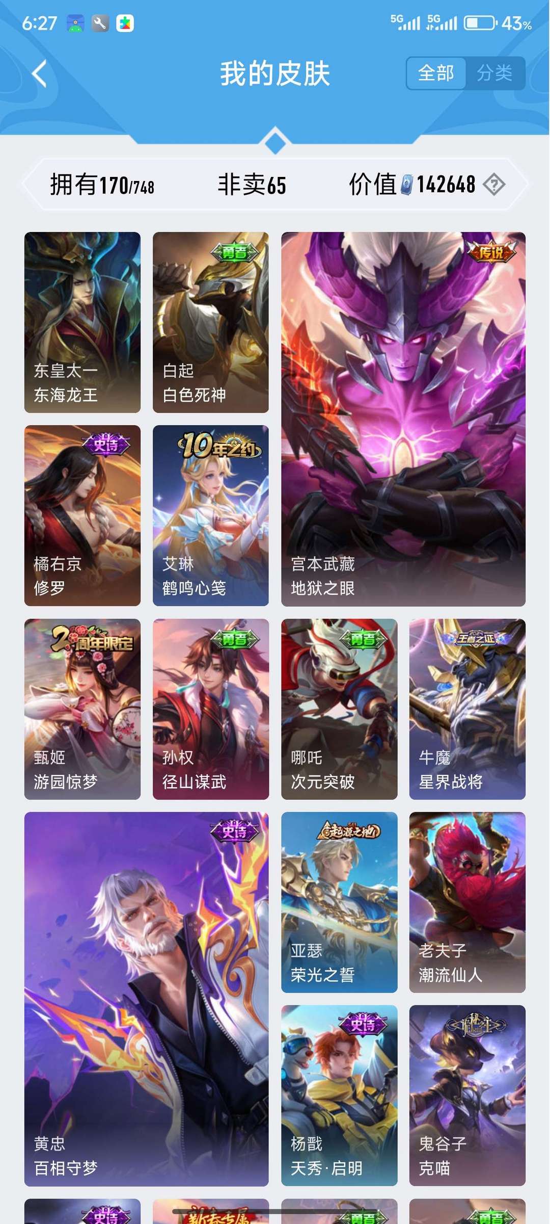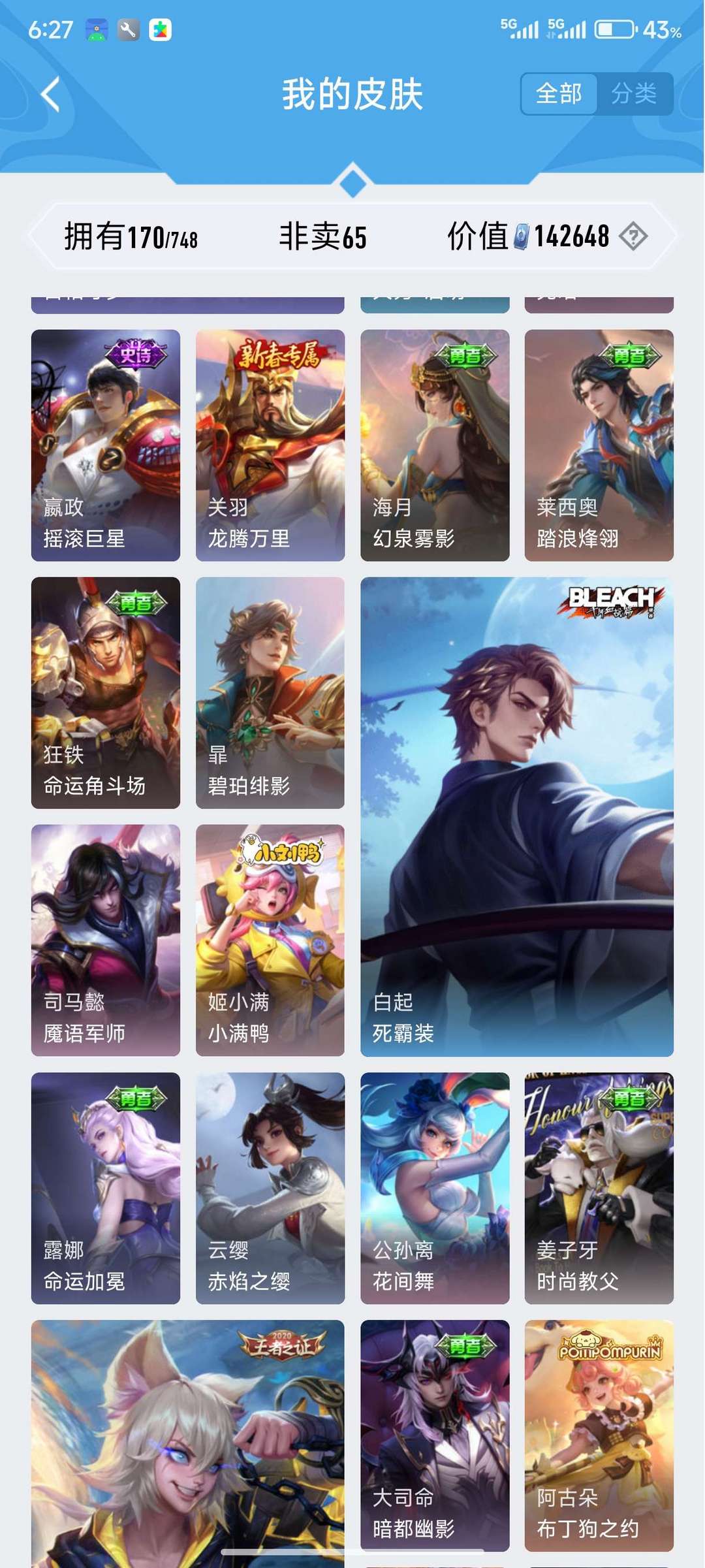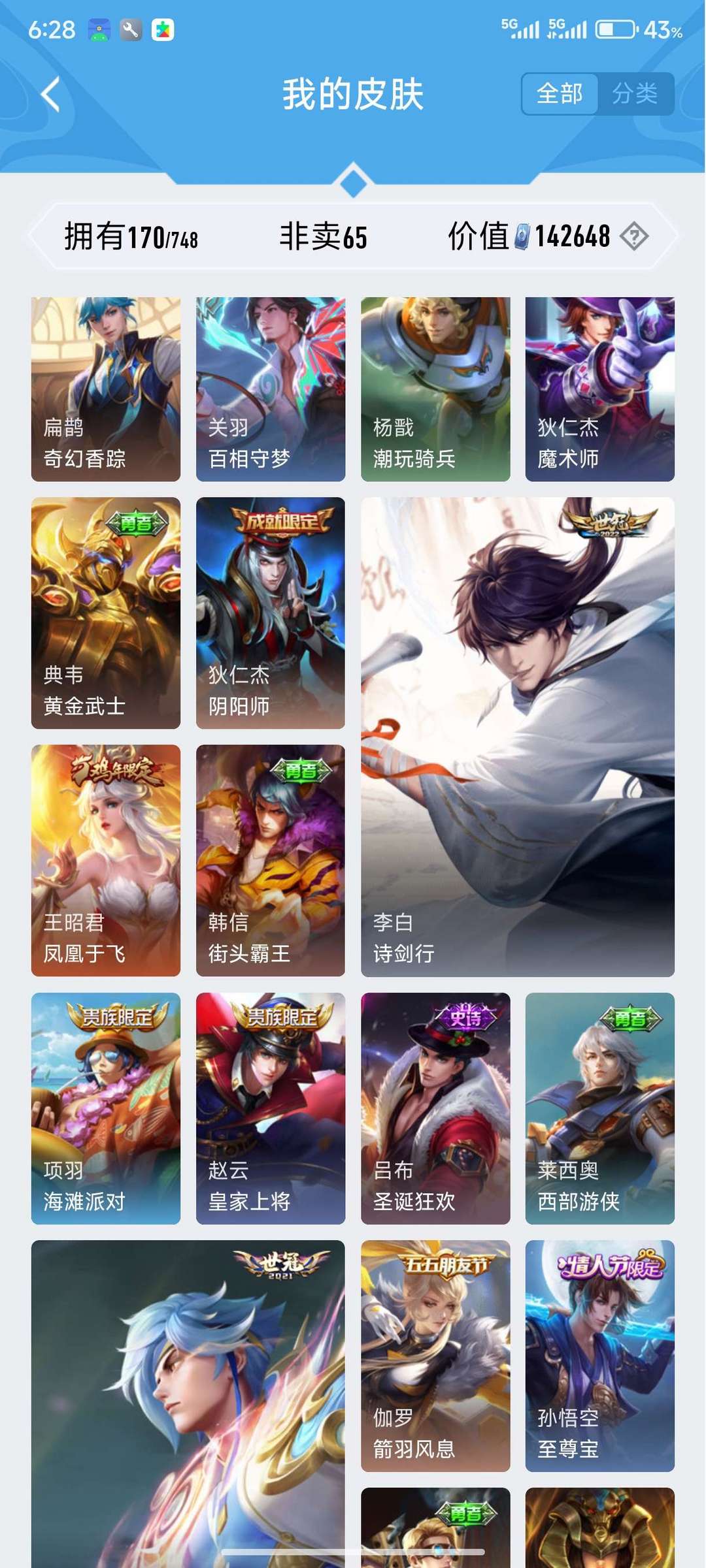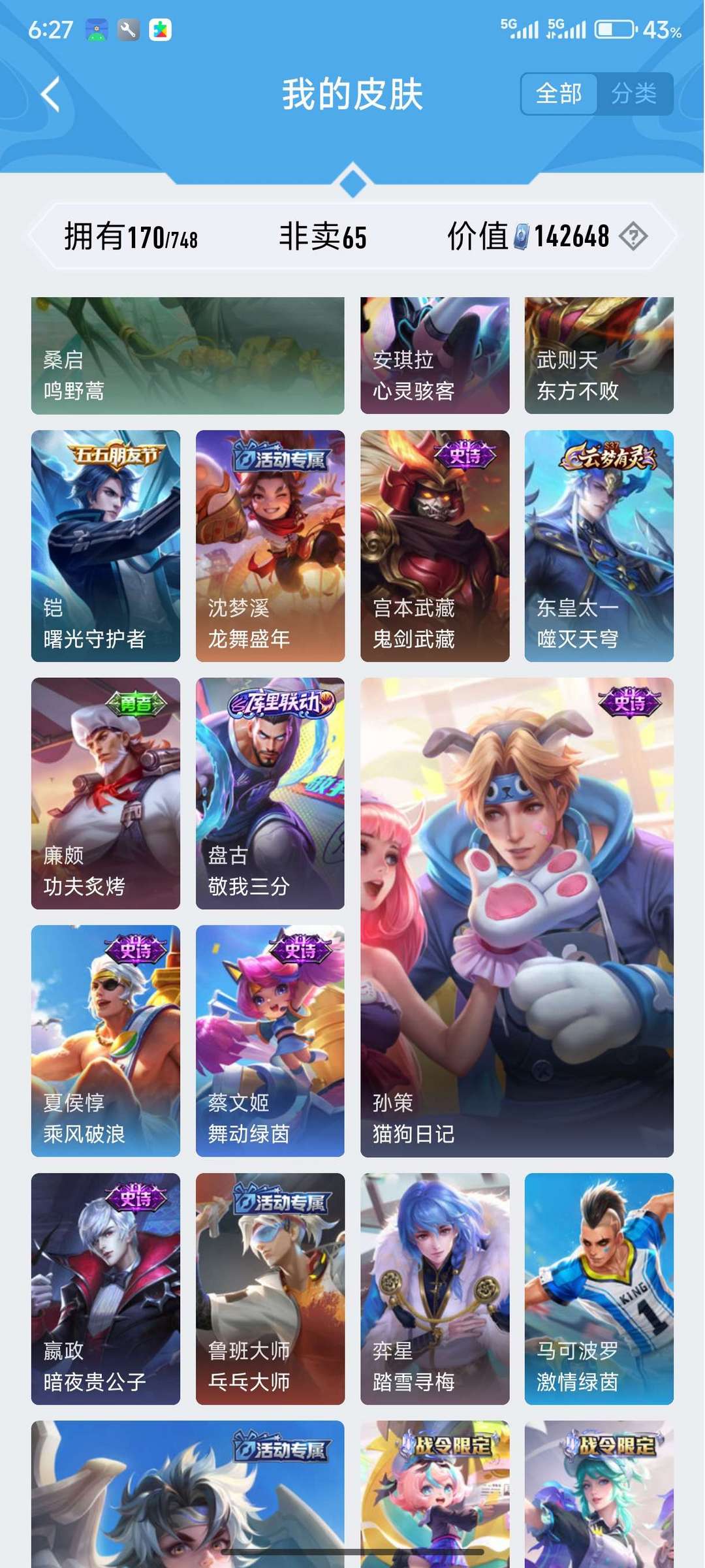 一万二金标马超11个传说皮,有个老虎虎限,有猴子至尊宝,花木兰典藏