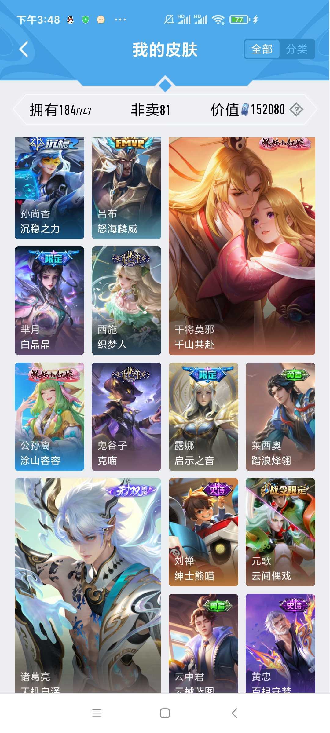 诸葛亮无双♥千山共赴♥万灵启世♥启示之音♥白晶晶♥炽霜斩♥至尊宝♥谪仙♥问璇玑永昼碎云