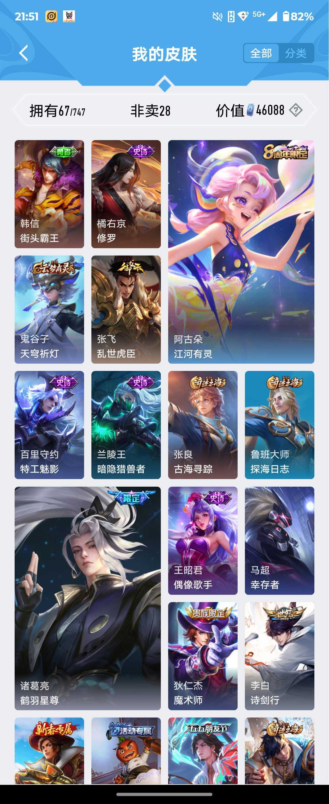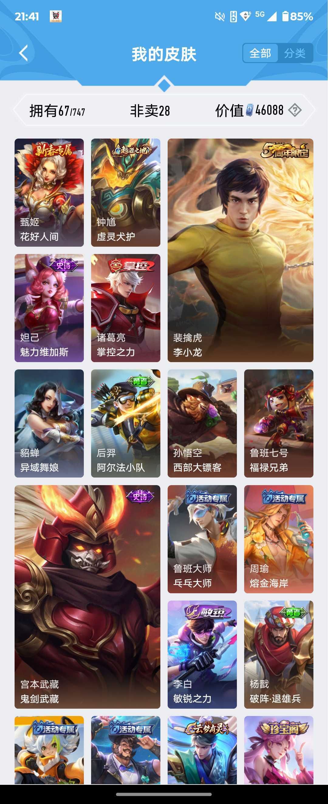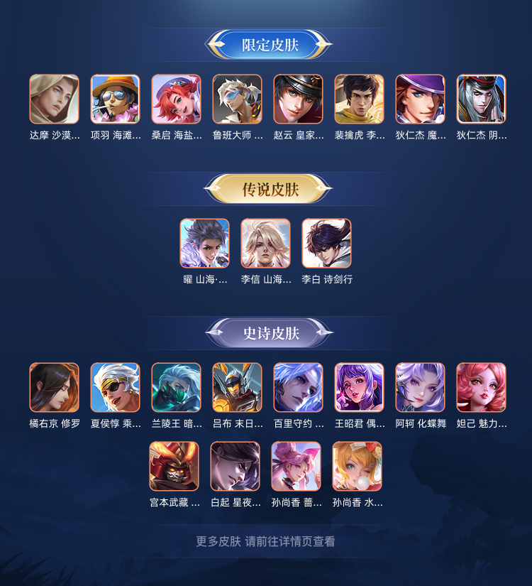 周年限定皮肤❤️甄姬❤️李小龙❤️小乔❤️全英雄可排位