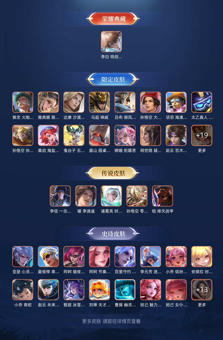 本游戏账号: V5用户,基础段位:至尊星耀IV,英雄多,皮肤多。典藏皮肤1个,感受典藏皮肤带来的优质体验快感,FMVP皮肤4个,尽情享受FMVP皮肤带来的主角光环, 私人所属英雄皮肤有:李白 鸣剑·曳影诸葛亮 时雨天司||铠 绛天战甲||百里守约 碎云||曜 李逍遥||桑启 鸣野蒿||孙悟空 零号·赤焰||李信 一念神魔马超 无双飞将||曜 云鹰飞将||镜 炽阳神光||干将莫邪 久胜战神,等等