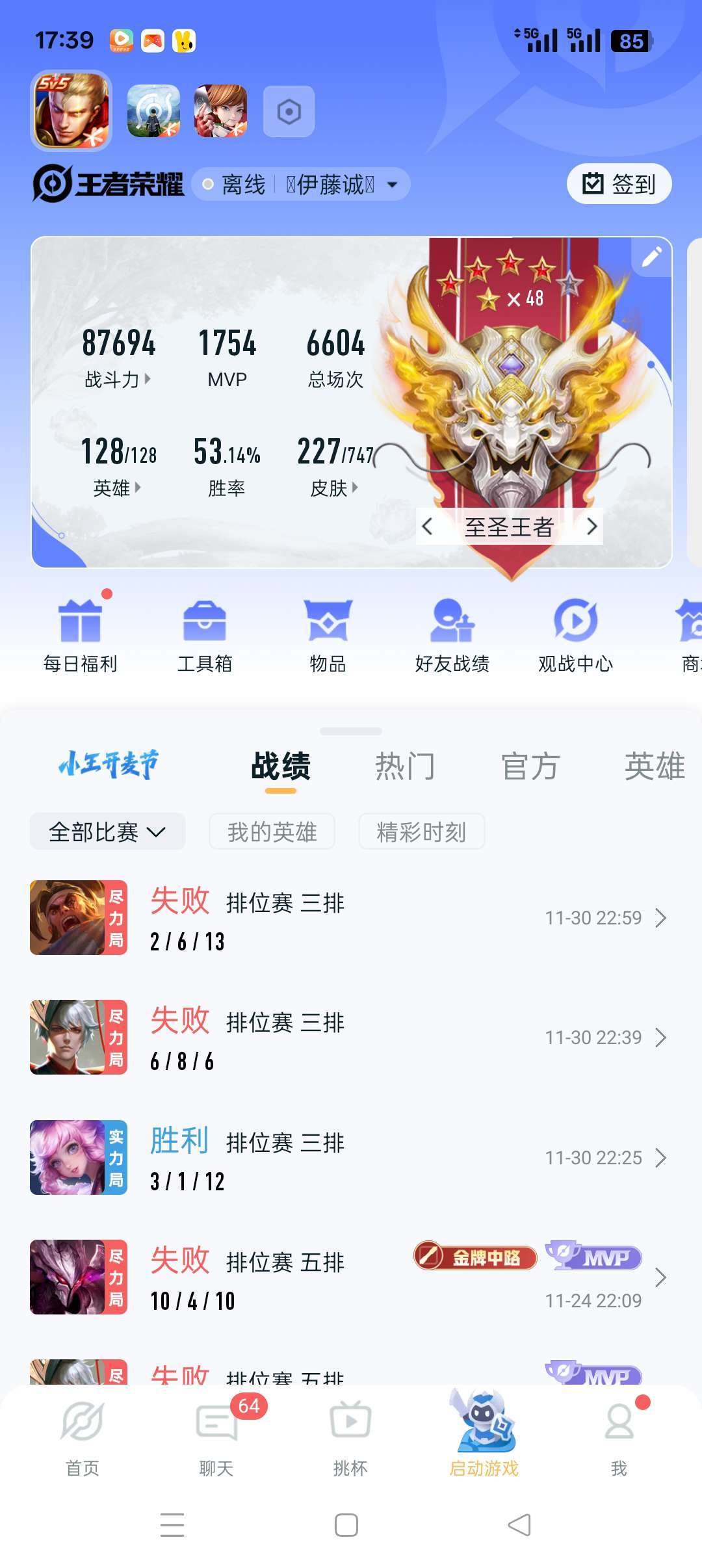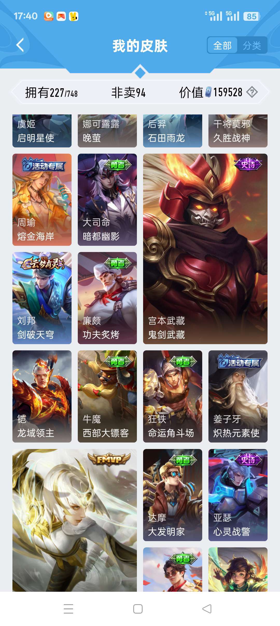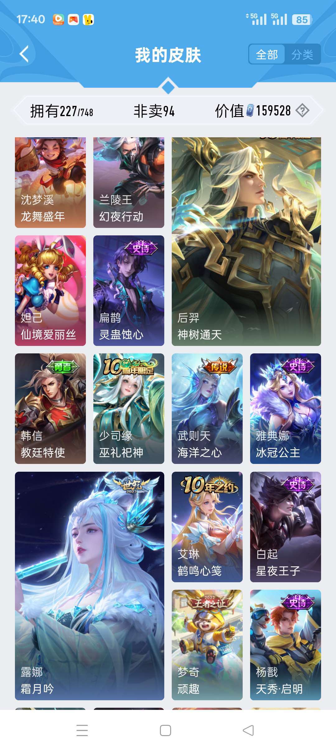 李白无双,宫本珍品,荣耀典藏两个,在榜银标鲁班成吉思汗银标,打野精品皮肤号