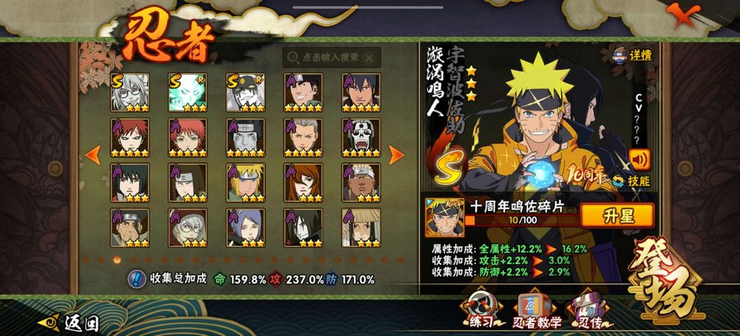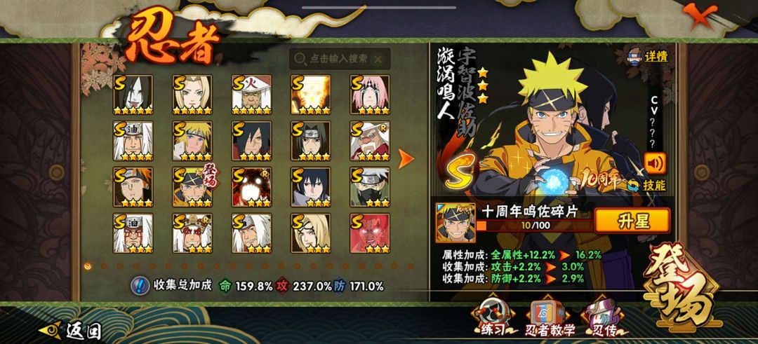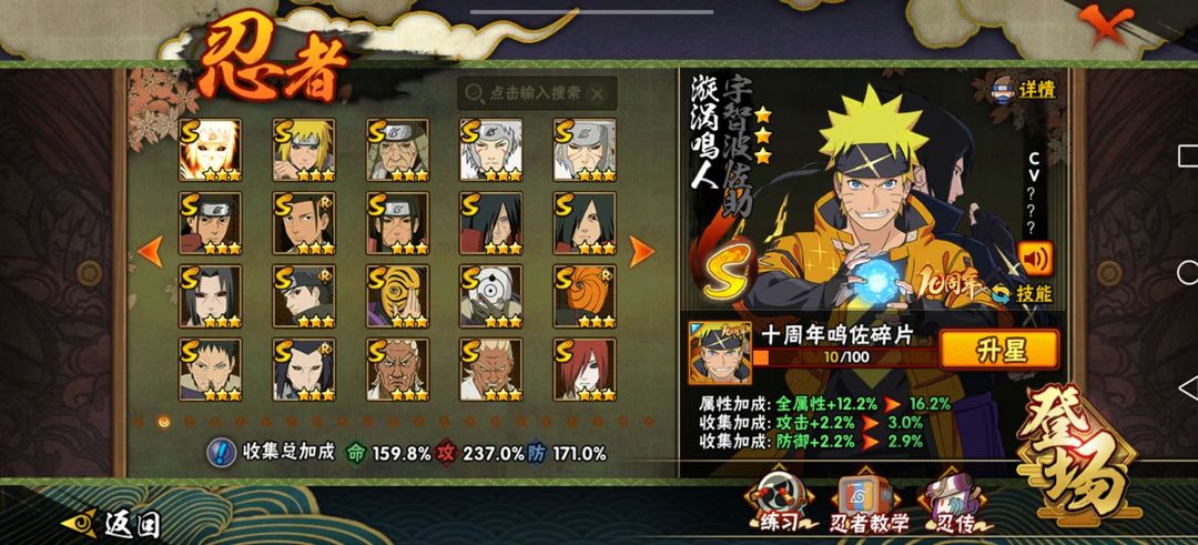43s,59a,五影阿飞,暴怒鸣人,传说自来也,须佐卡卡西,须佐止水,创立柱间,桃喇嘛,高招齐全,