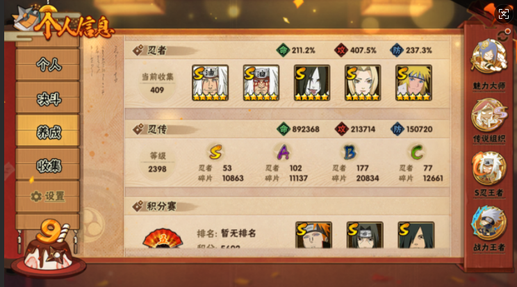 妖怪奇谭纲手✨大筒木舍人✨仙人模式巳月✨4348万战力✨53s102a✨忍战艾✨忍战春野樱✨