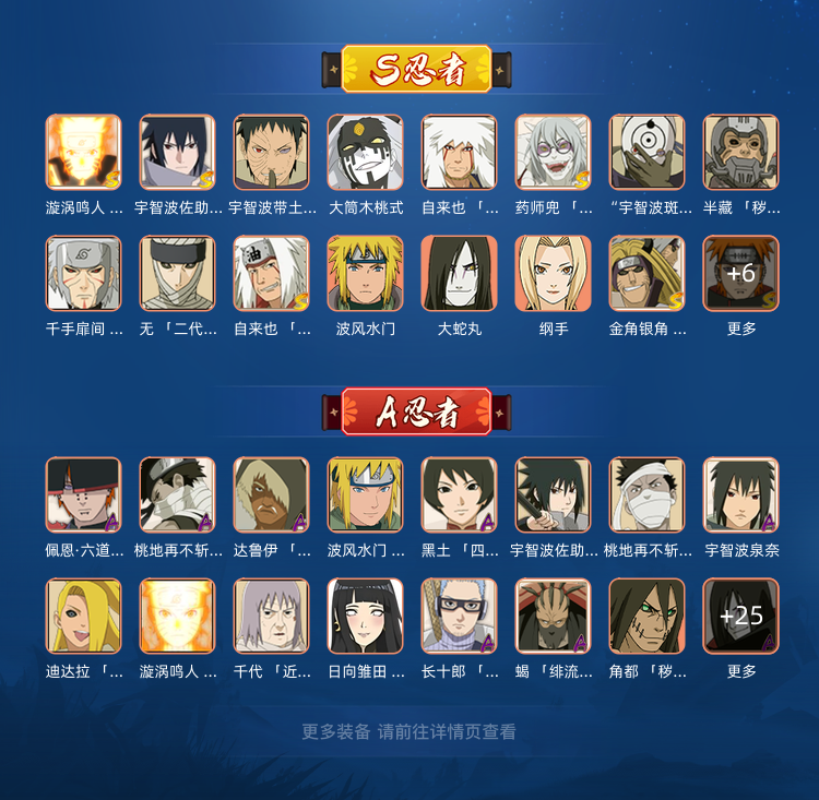 20S,41A有漂泊带土,漂泊佩恩 漂泊小南,须佐卡卡西和大部分高招忍者,性价比号