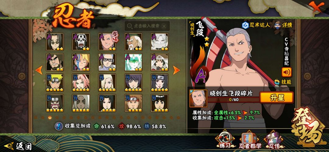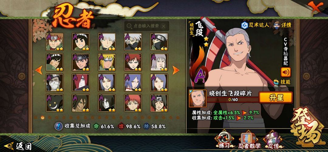 晓创生飞段,(夏日,新春,漂泊)小南,新春鼬,面麻,忍战卡卡西,卑留呼,熊猫,螃蟹