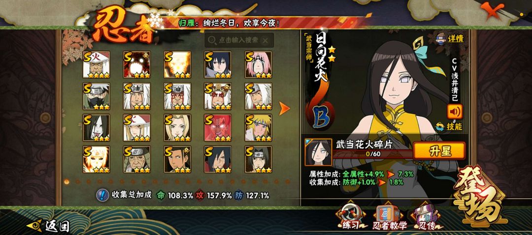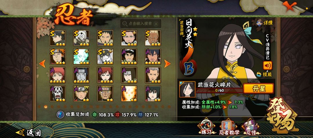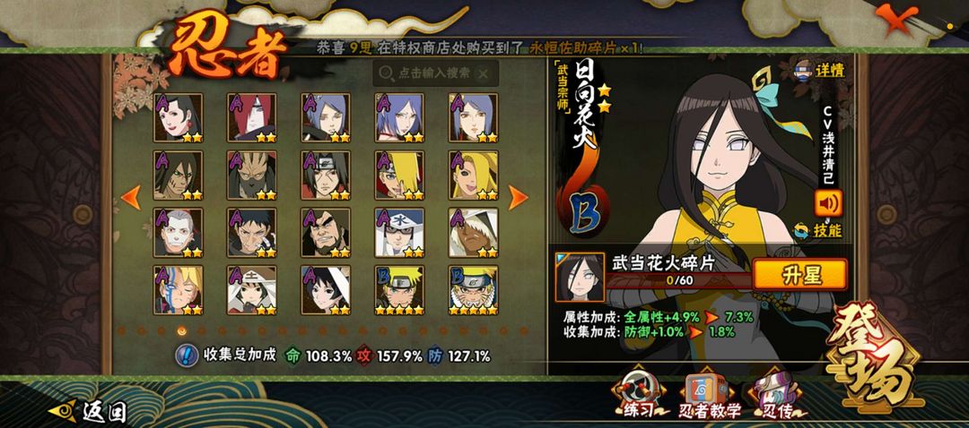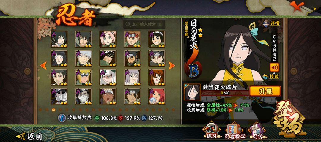 安卓q区1657万战斗力240忍者28S 50A 金身水门,须佐卡卡西,六尾鸣人,漂泊带土等等