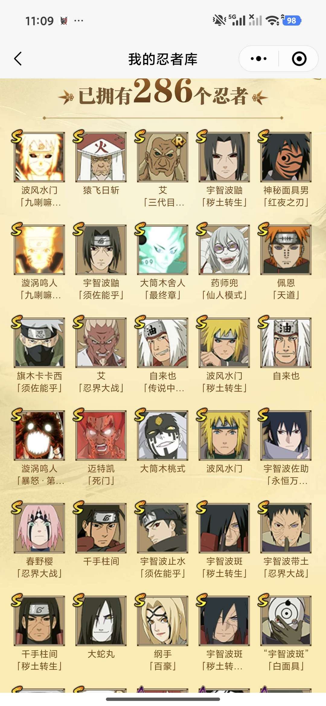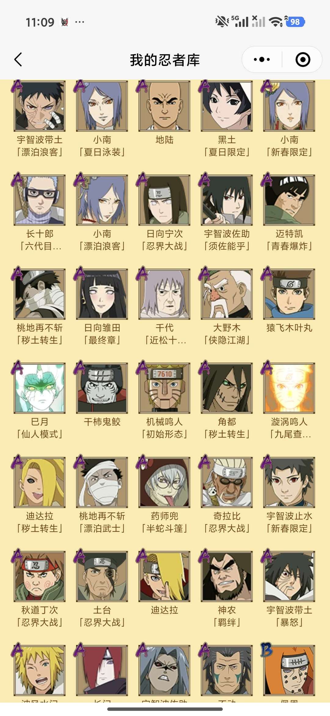 最近出的高招全了,点卷忍者有不少,298忍者全,忍法帖忍者也有4个