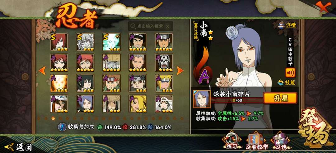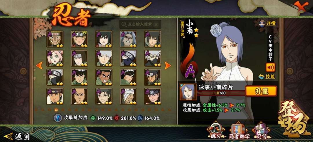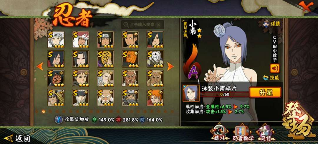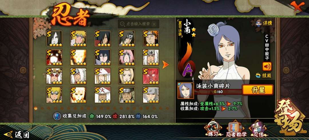 有很多付费忍者,S忍A忍超多,非常适合想要购买忍者的人试玩排位已开可以练手