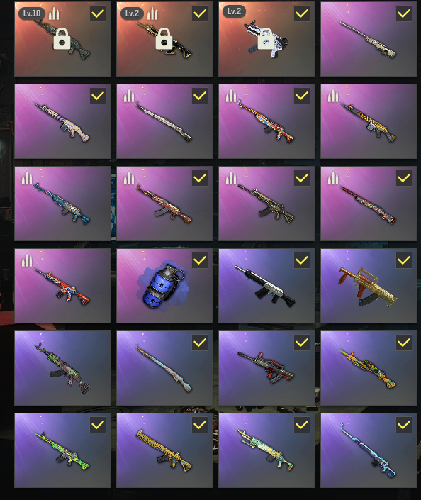 ⑩级青龙M762✅②无重力MP5K✅②八戒M4✅白战神✅黑鬼金面烟弹