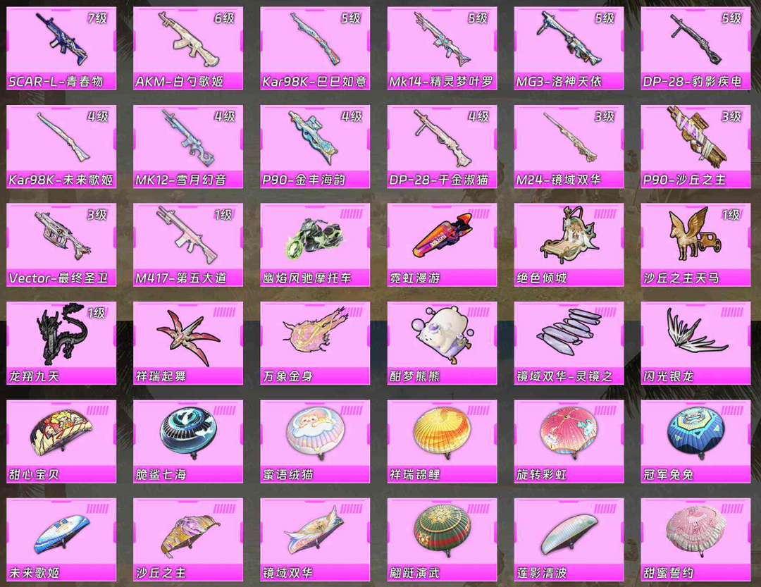 【红装:2 粉装:19 粉枪:16 载具:1】红木乃伊图卡盟❤红猫♥梦幻火箭❤蓝螳螂♥派对♥都市♥